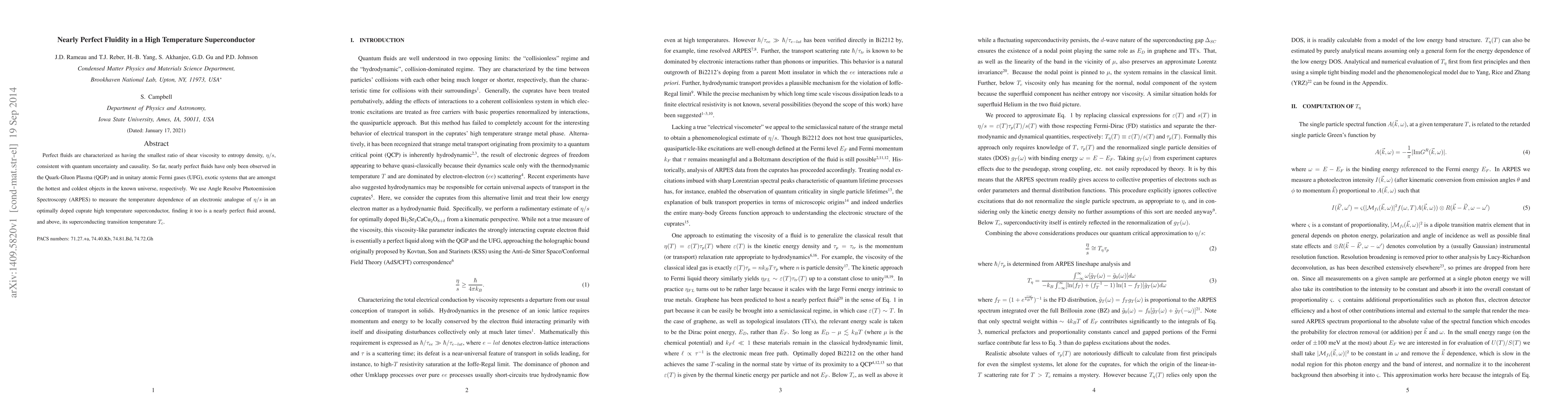This study reveals that optimally doped cuprate high-temperature superconductors exhibit nearly perfect fluid properties around and above their superconducting transition temperature, as evidenced by low shear viscosity to entropy density ratio, akin to Quark-Gluon Plasma and unitary atomic Fermi gases. ARPES measurements confirm this extraordinary fluidity.