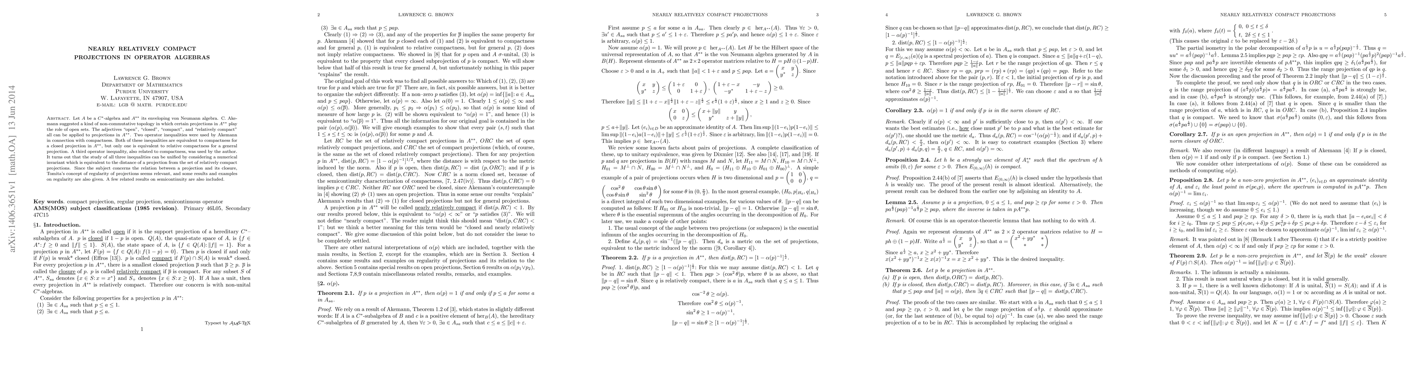 The paper introduces a numerical invariant that characterizes the distance of a projection from the set of relatively compact projections, unifying three operator inequalities related to compactness.