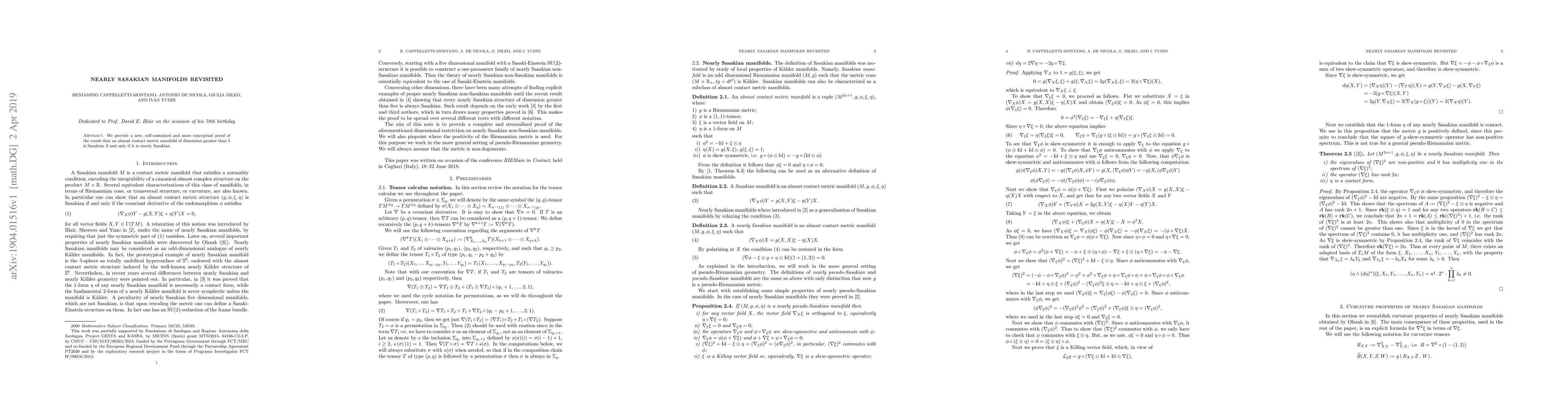 Summary: This paper offers a new, conceptual proof that an almost contact metric manifold with dimensions greater than 5 is Sasakian if and only if it is nearly Sasakian, providing a self-contained approach to the topic.