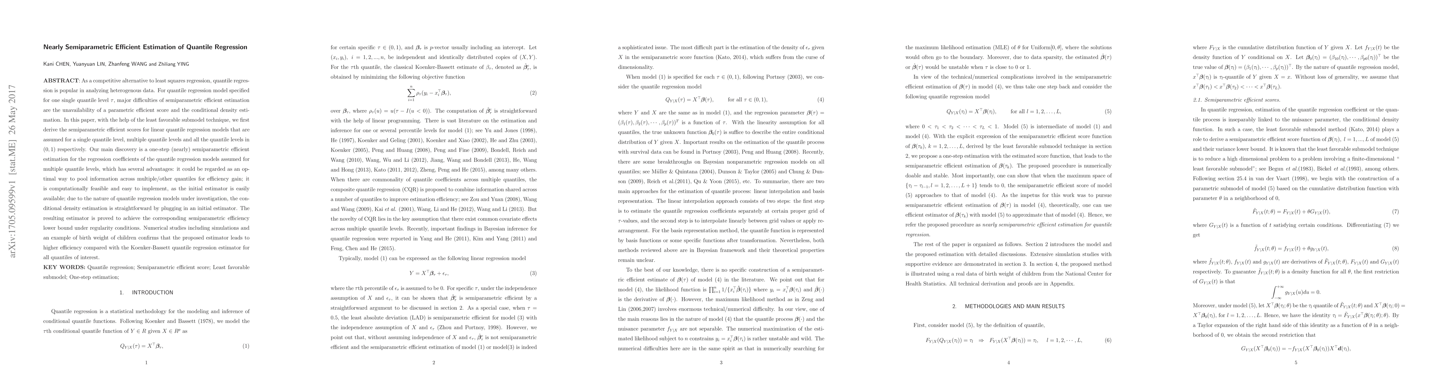 This paper proposes a nearly semiparametric efficient estimation method for quantile regression models, addressing challenges in semiparametric efficient estimation through the least favorable submodel technique. The developed one-step estimator efficiently pools information across multiple quantile levels, demonstrating superior efficiency compared to existing methods, as confirmed by numerical studies.
