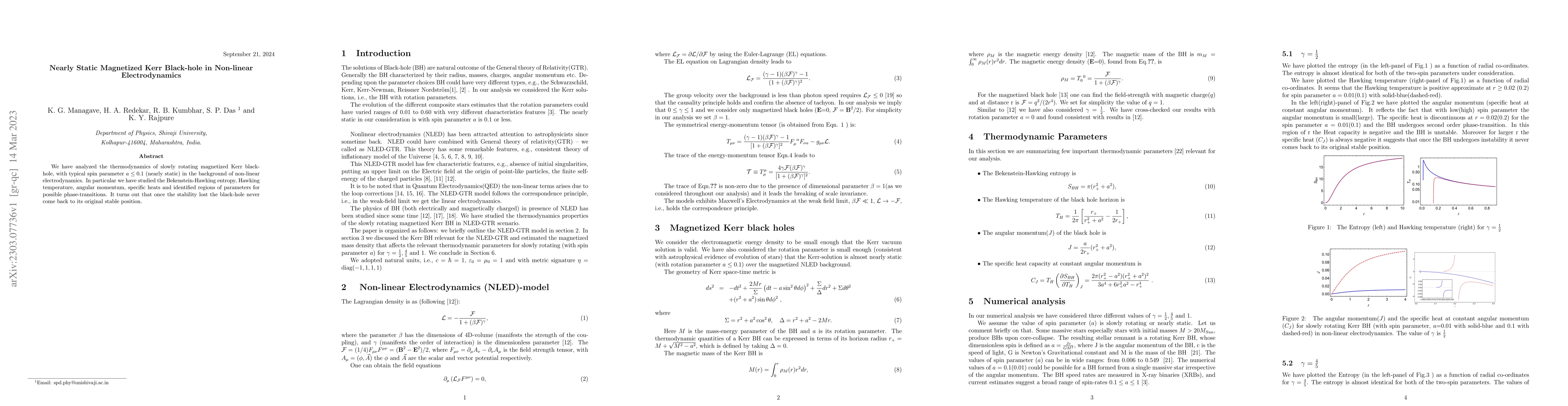 This paper investigates the thermodynamic properties of nearly static, slowly rotating magnetized Kerr black-holes influenced by non-linear electrodynamics, focusing on entropy, temperature, and stability, revealing that loss of stability leads to irreversible changes.