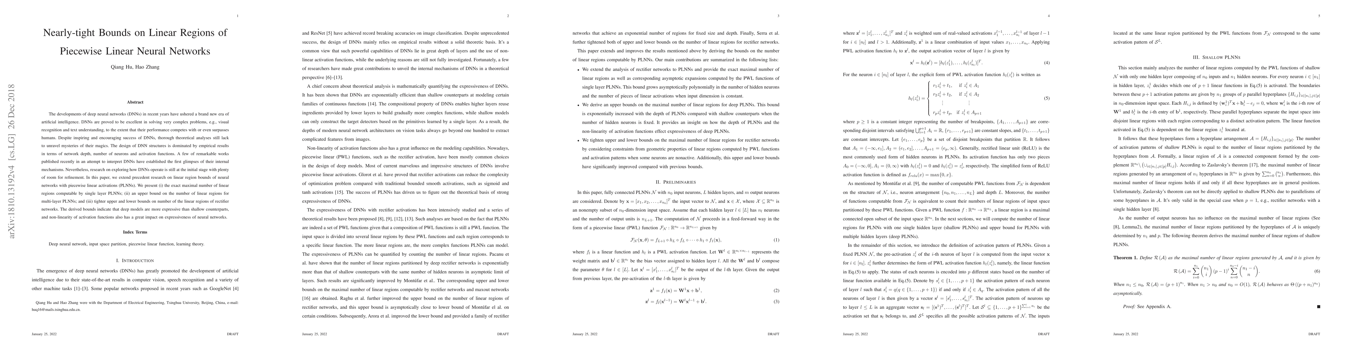This paper provides rigorous theoretical bounds on the linear regions within piecewise linear neural networks (PLNNs), establishing the exact maximal number of linear regions for single-layer PLNNs, an upper bound for multi-layer PLNNs, and a tighter upper bound for rectifier networks. These findings contribute to understanding DNNs' expressiveness and the impact of activation function non-linearity.