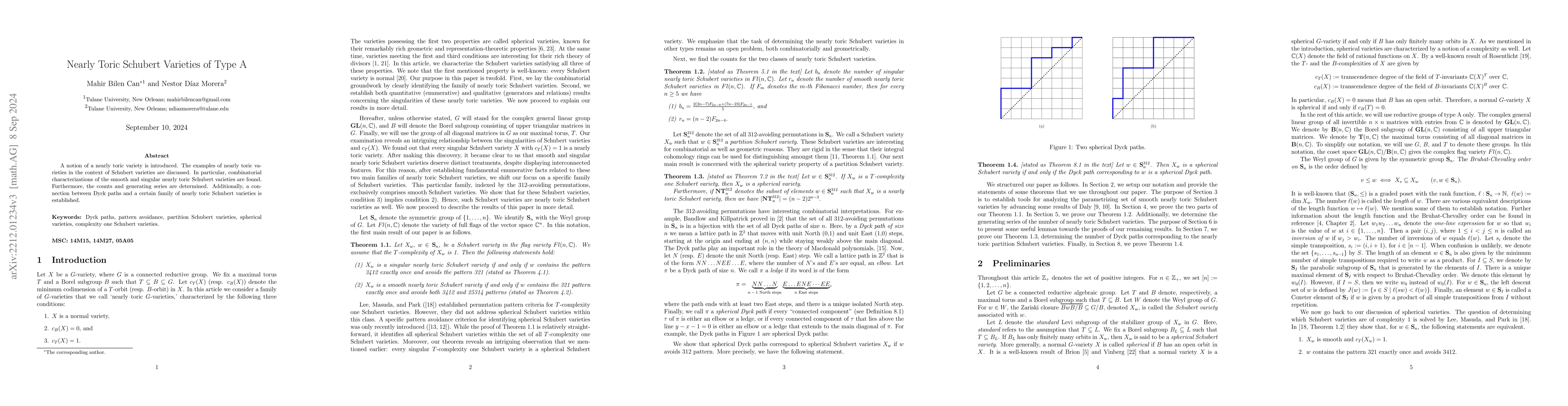 This paper characterizes spherical partition Schubert varieties that are nearly toric in terms of Dyck paths, introduces nearly toric varieties, identifies these varieties among Schubert varieties, and determines their cardinalities.