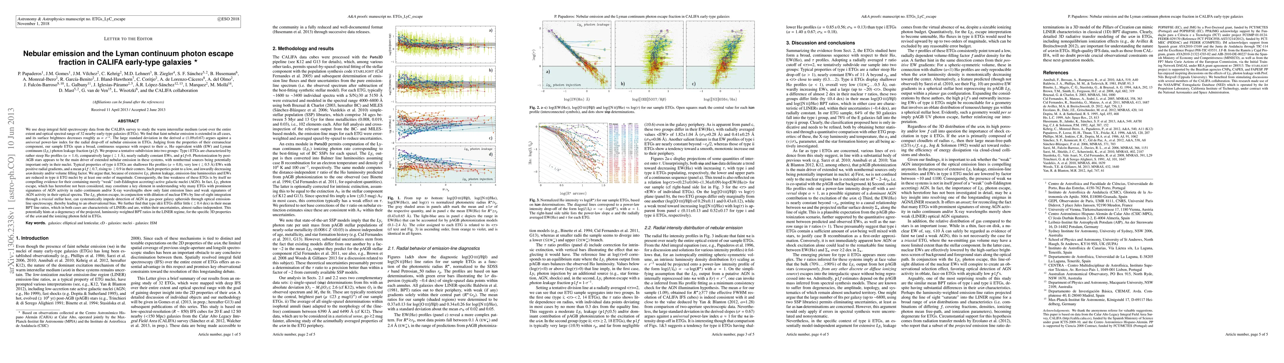 The research analyzes 32 nearby early-type galaxies using CALIFA survey data, proposing a classification based on Ha equivalent width (EW) and Lyman continuum (LyC) photon escape fraction (PLF). Type i ETGs show constant EWs and low LyC escape, while Type ii ETGs exhibit low, increasing EWs and high LyC escape (~0.9). This suggests that LyC photon leakage reduces emission-line luminosities in Type ii ETG nuclei, potentially explaining why some AGN-active ETGs show weak optical emission lines. The study indicates a degeneracy in projected BPT ratios for WIM properties in ETGs.