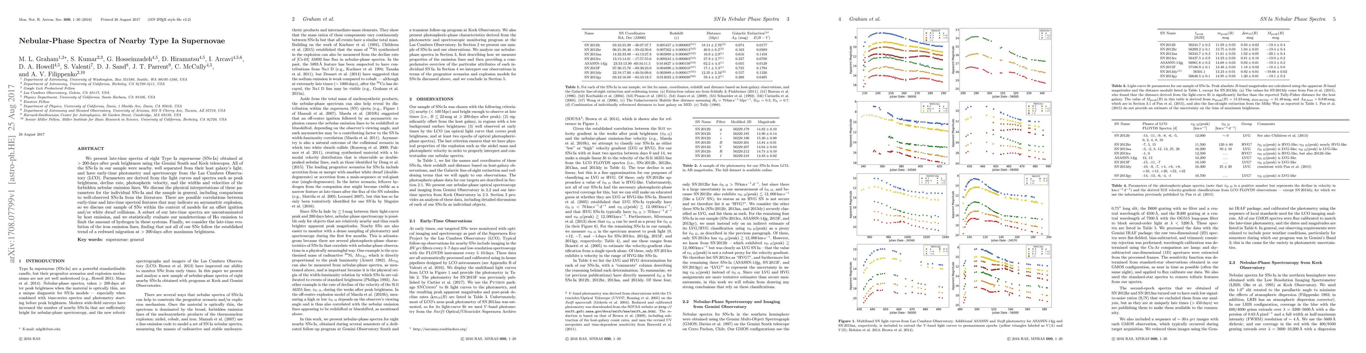 This study presents late-time spectra of eight nearby Type Ia supernovae using Gemini South and Keck telescopes. Key findings include possible correlations between early and late-time spectral features, suggesting asymmetric explosions; limitations on hydrogen content via Hα nondetections; and variations in iron emission line evolution, deviating from established trends.