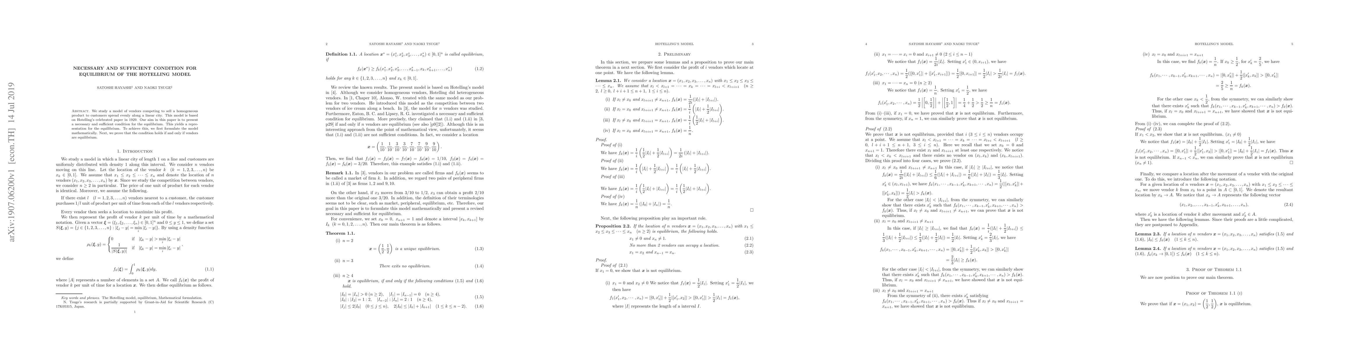 This paper studies a model of vendors competing to sell products along a linear city, finding necessary and sufficient conditions for equilibrium in the Hotelling model.