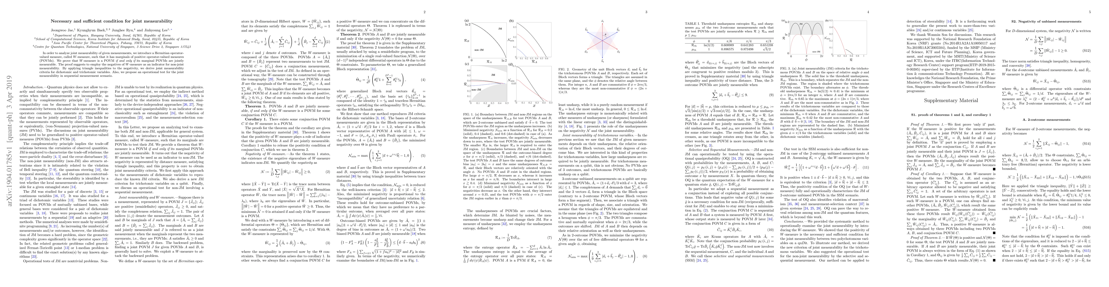 Researchers introduce a new measure called W-measure to analyze joint measurability of measurements. They prove that the W-measure is jointly measurable if and only if its marginal POVMs are jointly measurable.