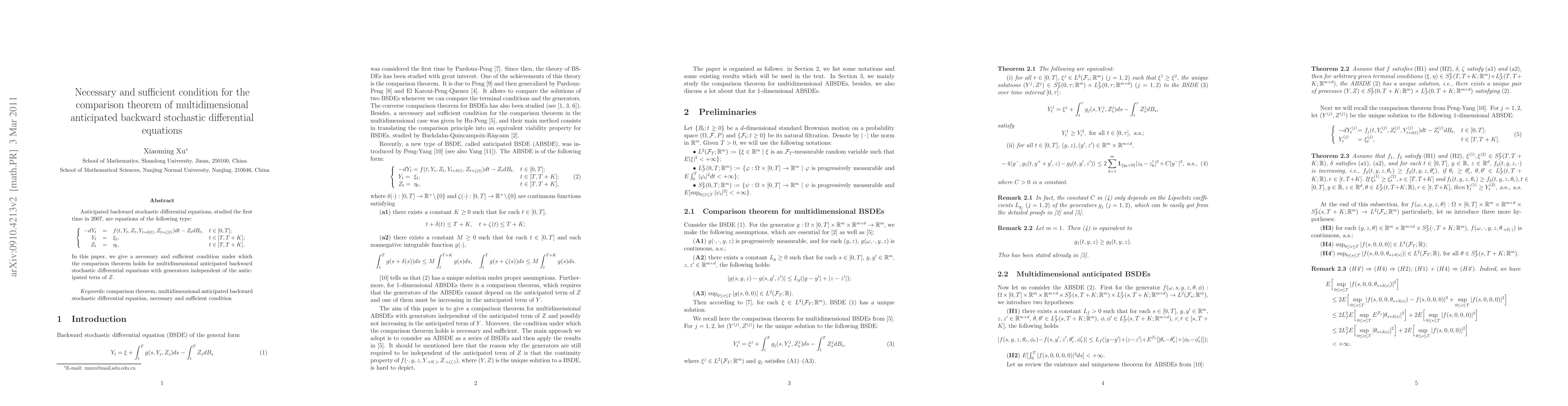 This paper establishes a necessary and sufficient condition for the comparison theorem to hold for multidimensional anticipated backward stochastic differential equations, where the generators are independent of the anticipated term of $Z$. The focus is on the structure of the equations and their solutions.