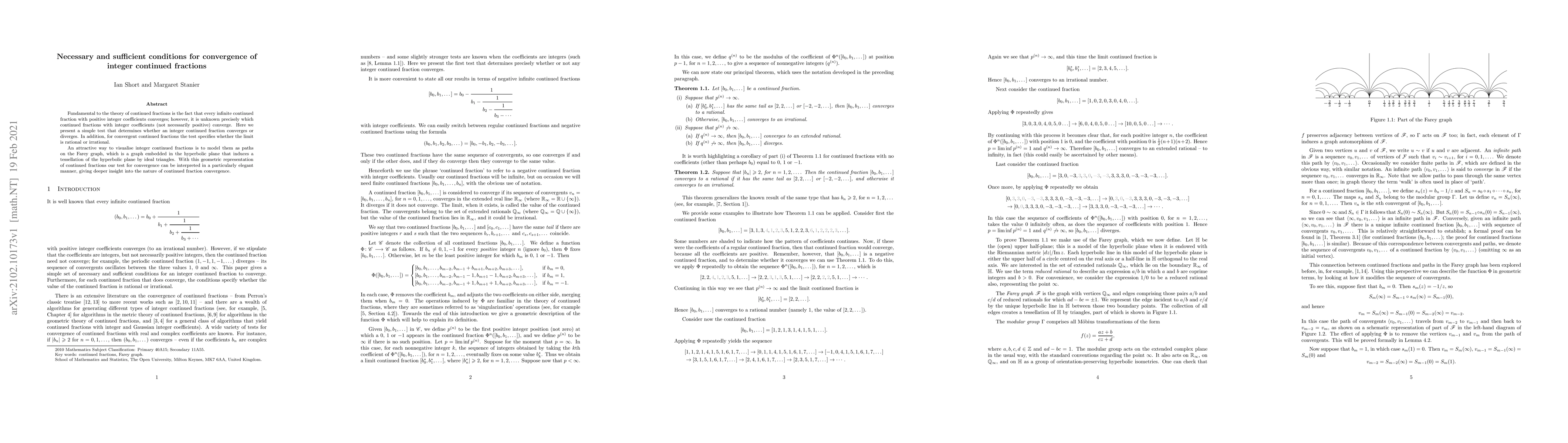 This paper introduces a simple test to determine the convergence of integer continued fractions and specifies whether their limits are rational or irrational. It also interprets this test geometrically using the Farey graph embedded in the hyperbolic plane to provide deeper insight into continued fraction convergence.