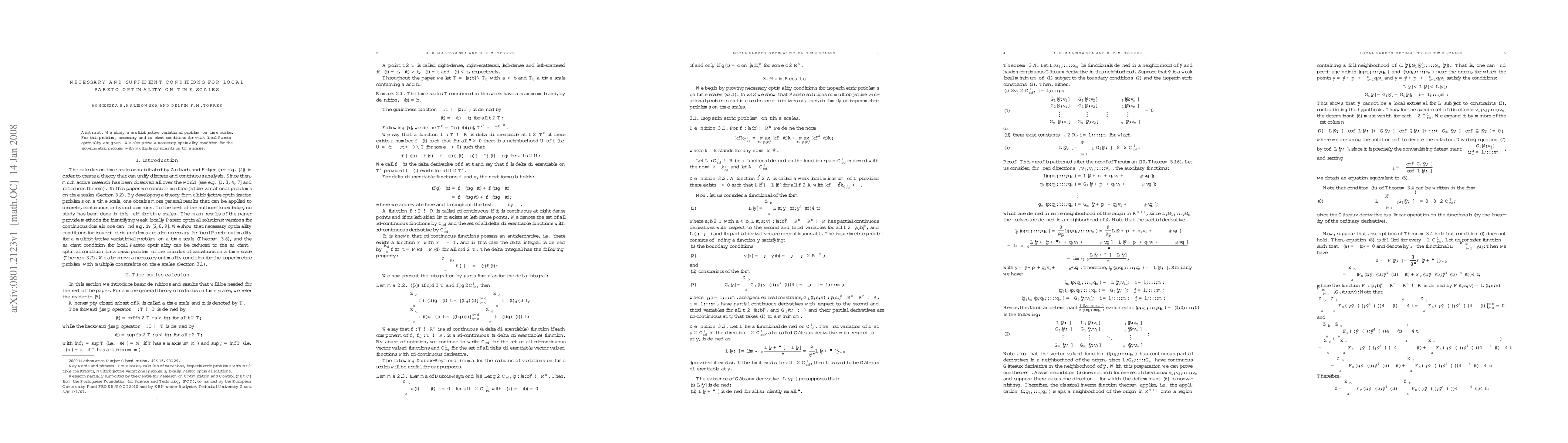 This paper provides necessary and sufficient conditions for weak local Pareto optimality in a multiobjective variational problem on time scales. Additionally, it establishes a necessary optimality condition for an isoperimetric problem with multiple constraints on time scales.