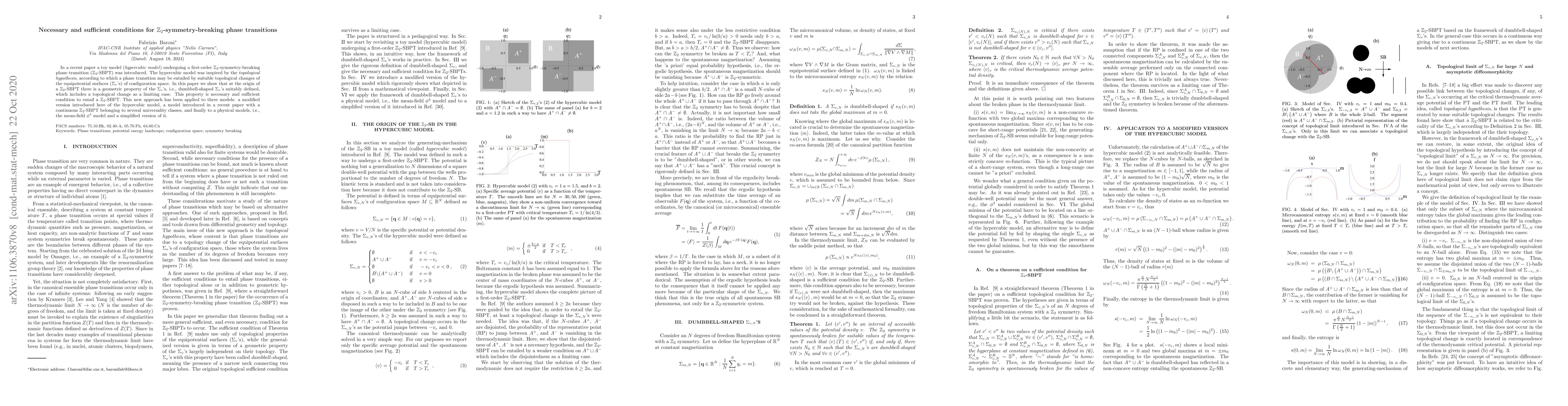 Researchers discovered a geometric property of equipotential surfaces in configuration space that is necessary and sufficient for a $ extit{Z}_2$-symmetry-breaking phase transition to occur. This finding has implications for understanding phase transitions in various models, including the hypercubic model and physical systems like the mean-field $ extit{φ}^4$ model.