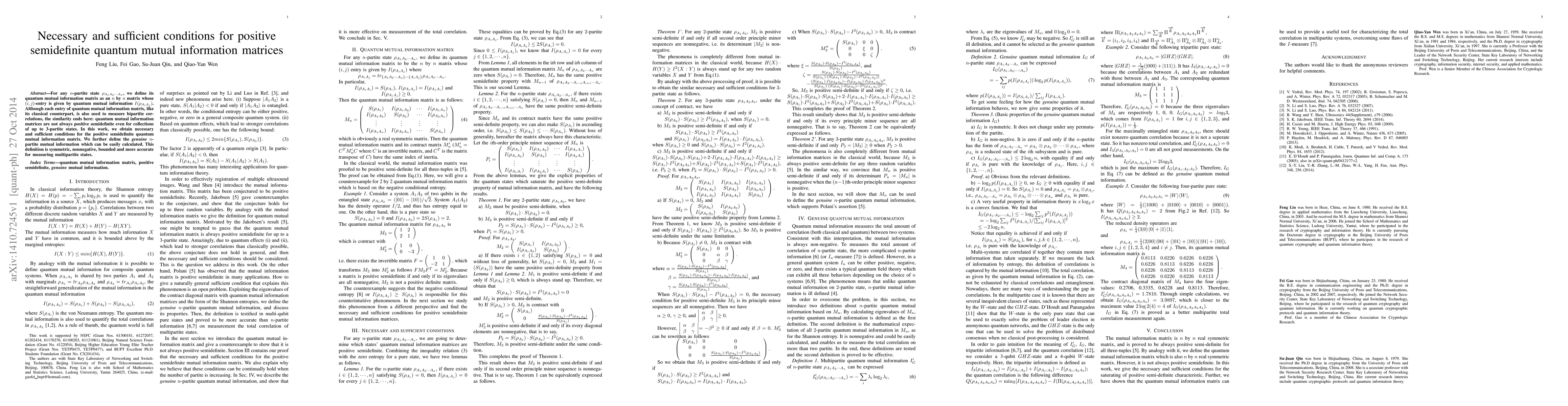 This paper establishes necessary and sufficient conditions for the positive semidefiniteness of quantum mutual information matrices for $n$-partite states. It also introduces a genuine $n$-partite mutual information measure that is symmetric, nonnegative, bounded, and more precise for assessing multipartite correlations.