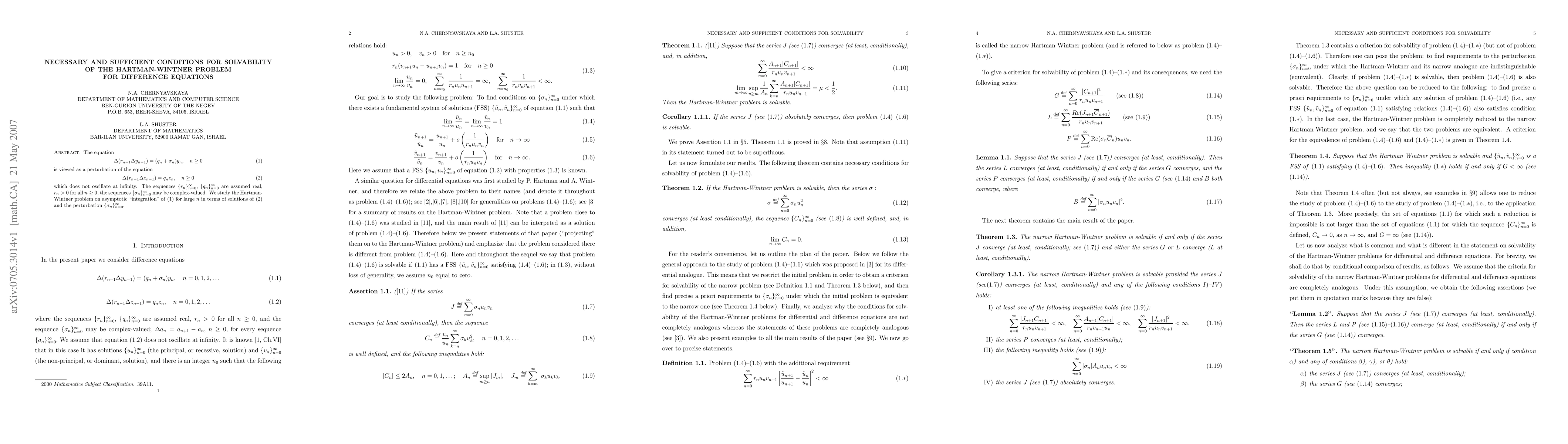 Summary: This paper establishes necessary and sufficient conditions for the solvability of the Hartman-Wintner problem concerning the asymptotic integration of the fundamental solution system for a second-order homogeneous difference equation as the argument approaches infinity.
