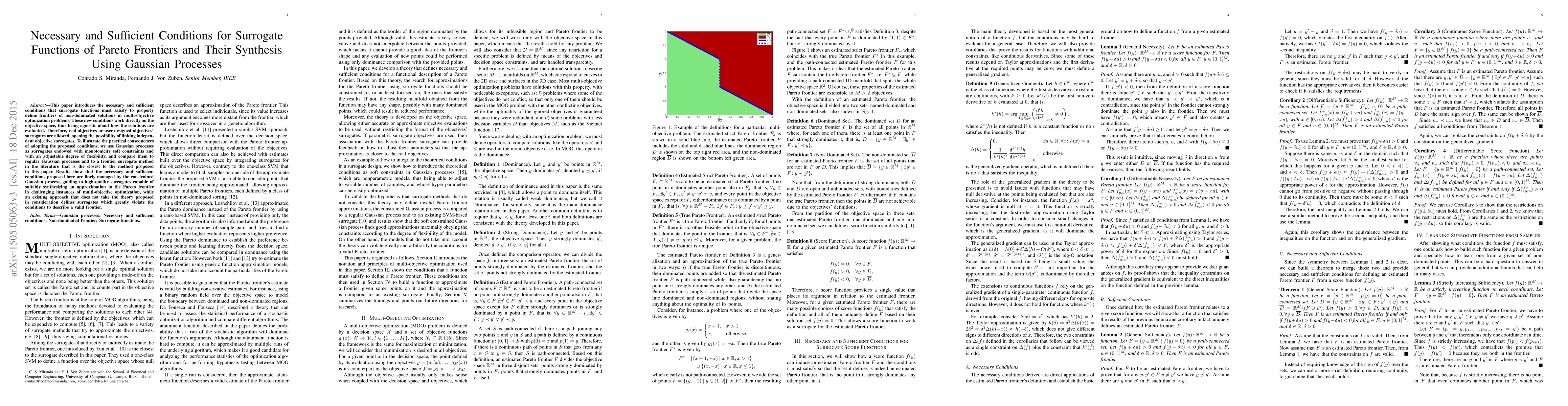 This paper introduces necessary and sufficient conditions for surrogate functions in multi-objective optimization to accurately define Pareto frontiers. It shows that constrained Gaussian processes can effectively manage these conditions and generate high-quality surrogates.