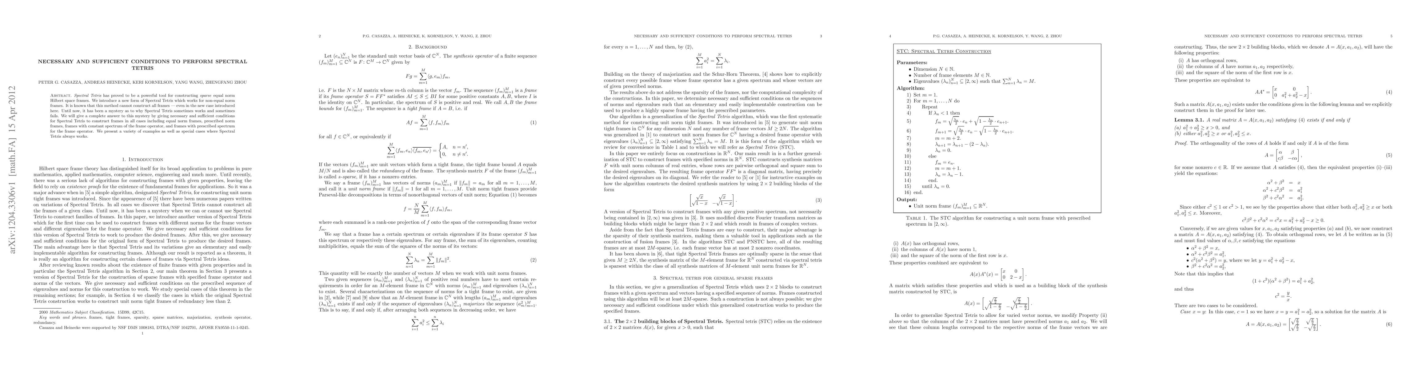 This paper establishes necessary and sufficient conditions for Spectral Tetris to successfully construct various types of sparse frames, including equal norm, prescribed norm, and frames with specific spectral properties. It resolves the mystery behind the method's variable success by detailing when Spectral Tetris is guaranteed to work.