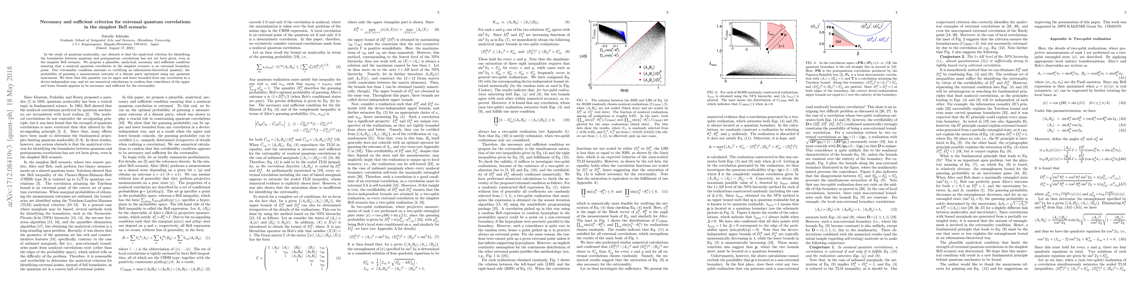 The paper introduces a device-independent, analytical condition for extremal quantum correlations in the simplest Bell scenario, based on upper and lower bounds of a measurement outcome guessing probability.