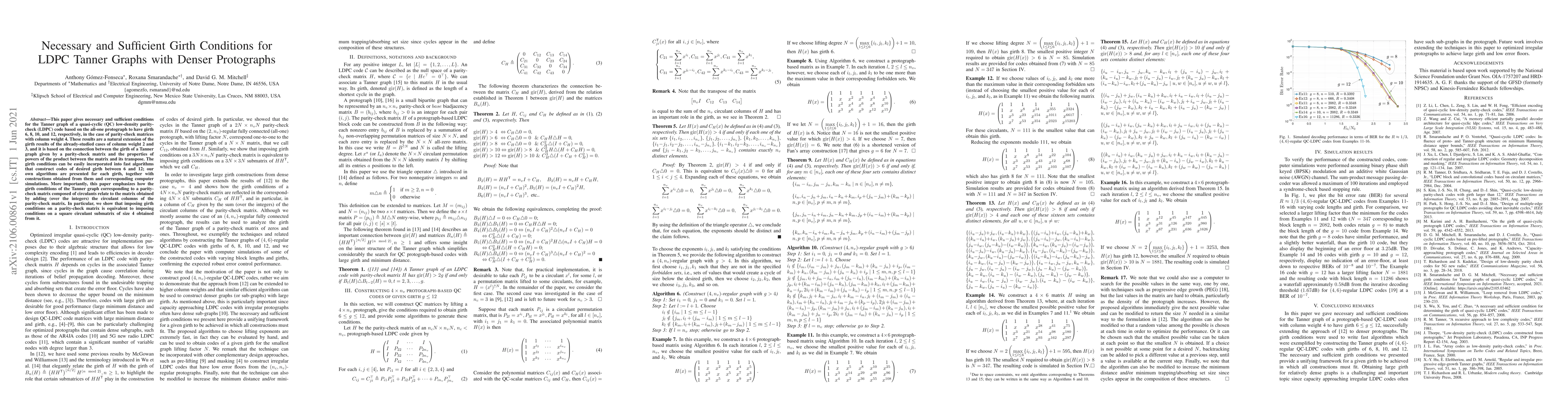 This paper establishes necessary and sufficient girth conditions for the Tanner graph of quasi-cyclic LDPC codes with column weight 4, extending previous results for lower column weights. It provides algorithms for constructing codes with girths 6 to 12, emphasizing the relationship between girth conditions and the properties of circulant matrices.
