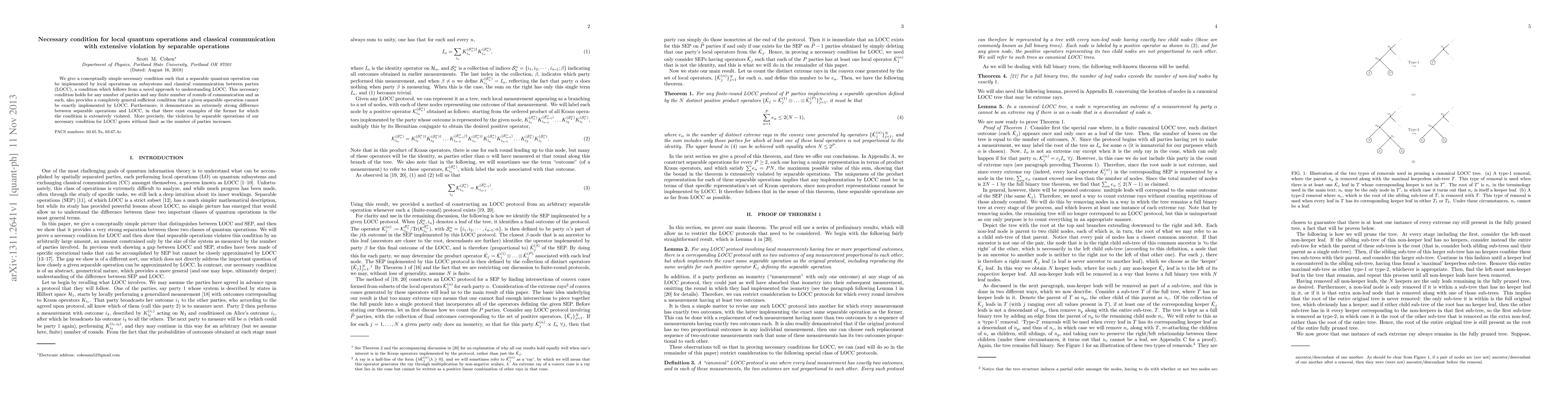 Researchers discovered a necessary condition for quantum operations that can't be performed with local actions and classical communication, highlighting the difference between separable operations and classical communication protocols.