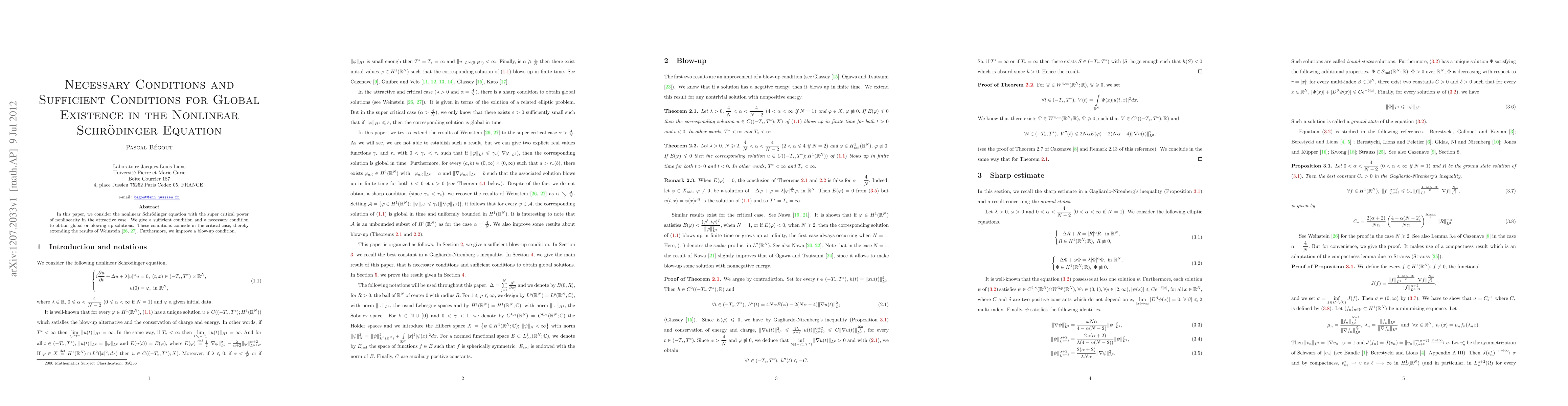 This paper investigates the nonlinear Schrödinger equation with supercritical nonlinearity, providing both sufficient and necessary conditions for global existence versus solution blow-up. The conditions coincide in the critical case, extending Weinstein's results and improving the blow-up condition.