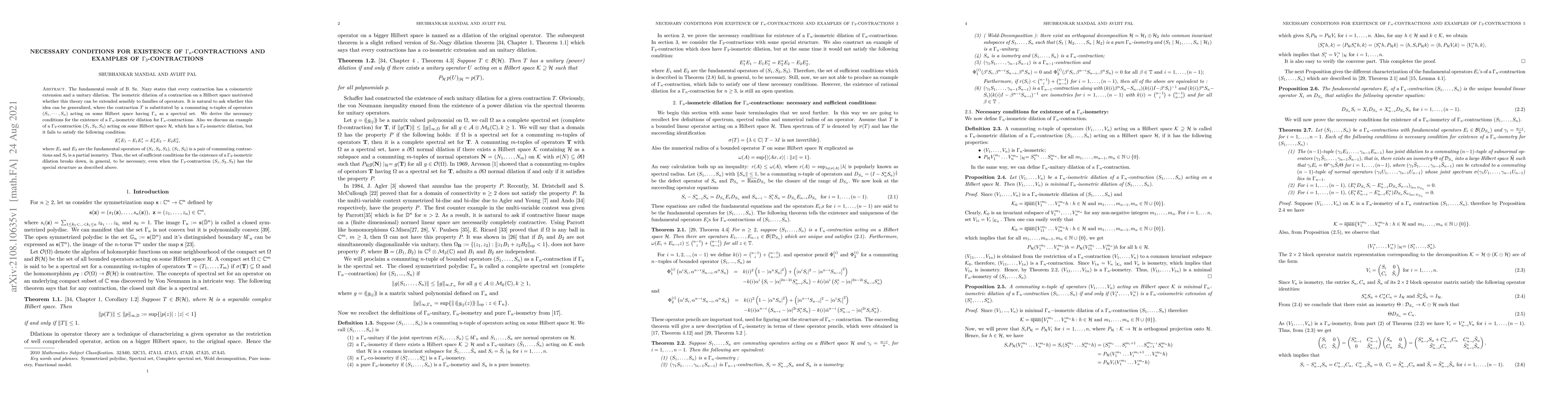 The paper investigates necessary conditions for the existence of η_n-isometric dilations for η_n-contractions and provides an example of a η_3-contraction with a specific failure condition, highlighting the limitations of generalizing Sz. Nazy's theory to families of operators.