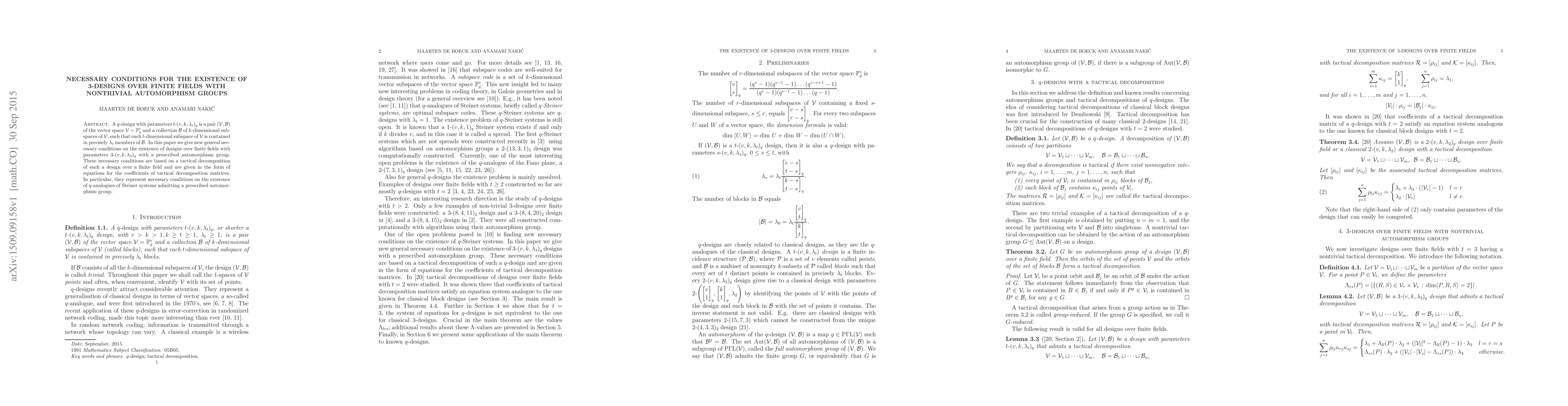 A q-design with parameters t-(v,k,lambda_t)_q is a pair (V, B) of the v-dimensional vector space V over GF(q) and a collection B of k-dimensional subspaces of V, such that each t-dimensional subspace of V is contained in precisely lambda_t members of B. In this paper we give new general necessary conditions on the existence of designs over finite fields with parameters 3-(v, k , lambda_3)_q with a prescribed automorphism group. These necessary conditions are based on a tactical decomposition of such a design over a finite field and are given in the form of equations for the coefficients of tactical decomposition matrices. In particular, they represent necessary conditions on the existence of q-analogues of Steiner systems admitting a prescribed automorphism group.