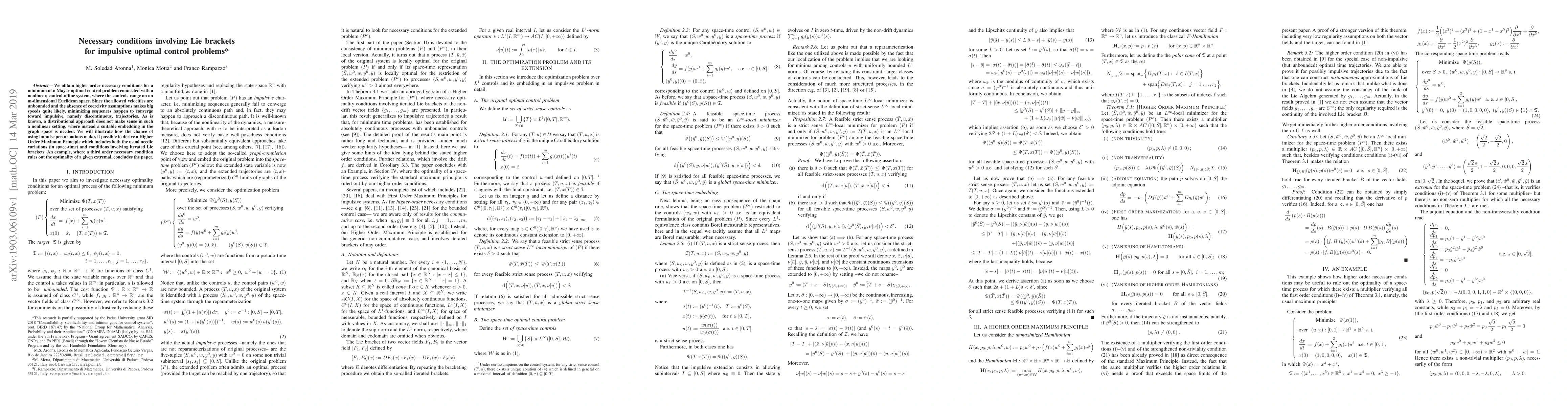We obtain higher order necessary conditions for a minimum of a Mayer optimal control problem connected with a nonlinear, control-affine system, where the controls range on an m-dimensional Euclidean space. Since the allowed velocities are unbounded and the absence of coercivity assumptions makes big speeds quite likely, minimizing sequences happen to converge toward "impulsive", namely discontinuous, trajectories. As is known, a distributional approach does not make sense in such a nonlinear setting, where instead a suitable embedding in the graph space is needed. We will illustrate how the chance of using impulse perturbations makes it possible to derive a Higher Order Maximum Principle which includes both the usual needle variations (in space-time) and conditions involving iterated Lie brackets. An example, where a third order necessary condition rules out the optimality of a given extremal, concludes the paper.