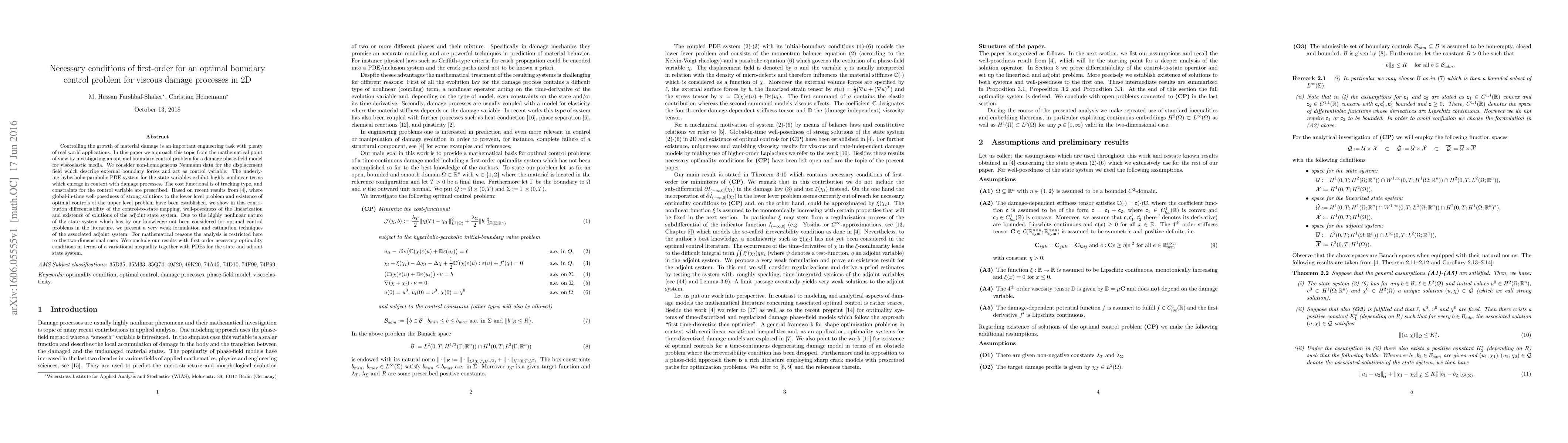 Researchers investigated an optimal boundary control problem for a damage phase-field model in 2D viscoelastic media, finding necessary conditions for optimality through variational inequalities and PDEs.