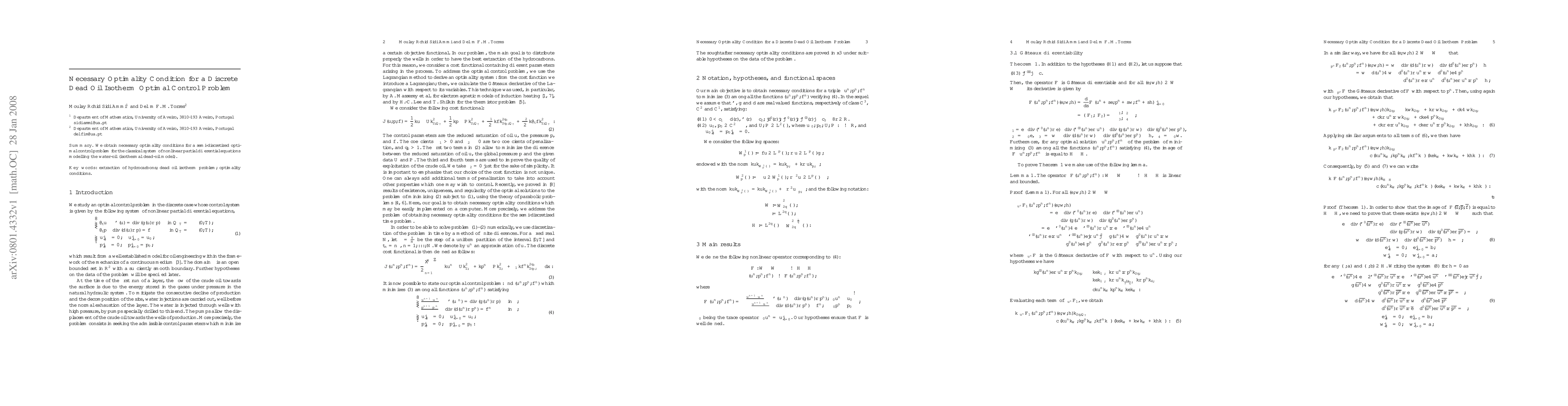 We obtain necessary optimality conditions for a semi-discretized optimal control problem for the classical system of nonlinear partial differential equations modelling the water-oil (isothermal dead-oil model).