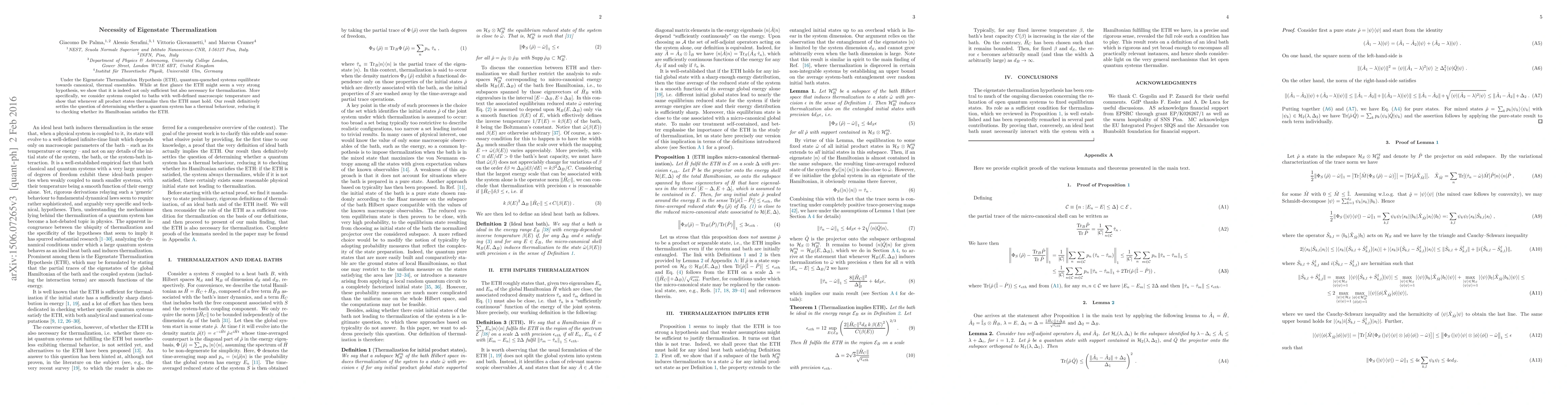 Under the Eigenstate Thermalization Hypothesis (ETH), quantum-quenched systems equilibrate towards canonical, thermal ensembles. While at first glance the ETH might seem a very strong hypothesis, we show that it is indeed not only sufficient but also necessary for thermalization. More specifically, we consider systems coupled to baths with well-defined macroscopic temperature and show that whenever all product states thermalize then the ETH must hold. Our result definitively settles the question of determining whether a quantum system has a thermal behaviour, reducing it to checking whether its Hamiltonian satisfies the ETH.