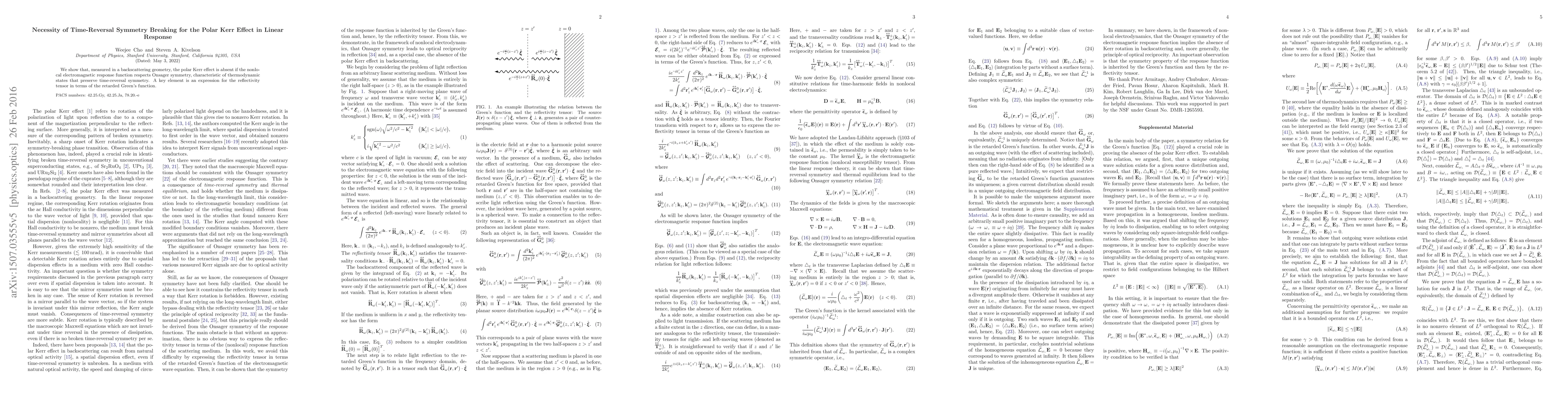 This research demonstrates that the polar Kerr effect, observed in a backscattering geometry, does not occur if the electromagnetic response respects Onsager symmetry, indicating that time-reversal symmetry is preserved. The absence of the effect is shown through an expression linking the reflectivity tensor to the retarded Green's function.