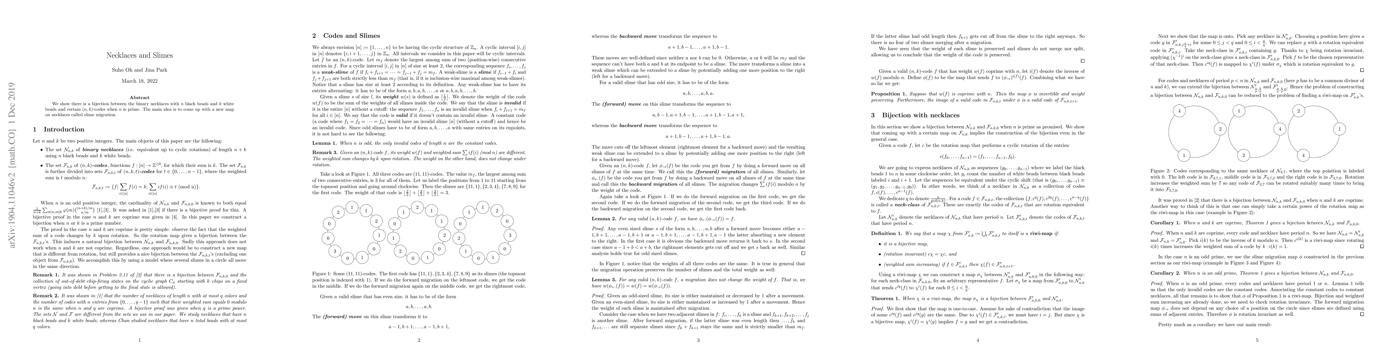 Researchers discovered a bijection between binary necklaces with prime n black beads and k white beads and certain codes, enabling new insights into necklace patterns. This finding is based on the concept of slime migration on necklaces.