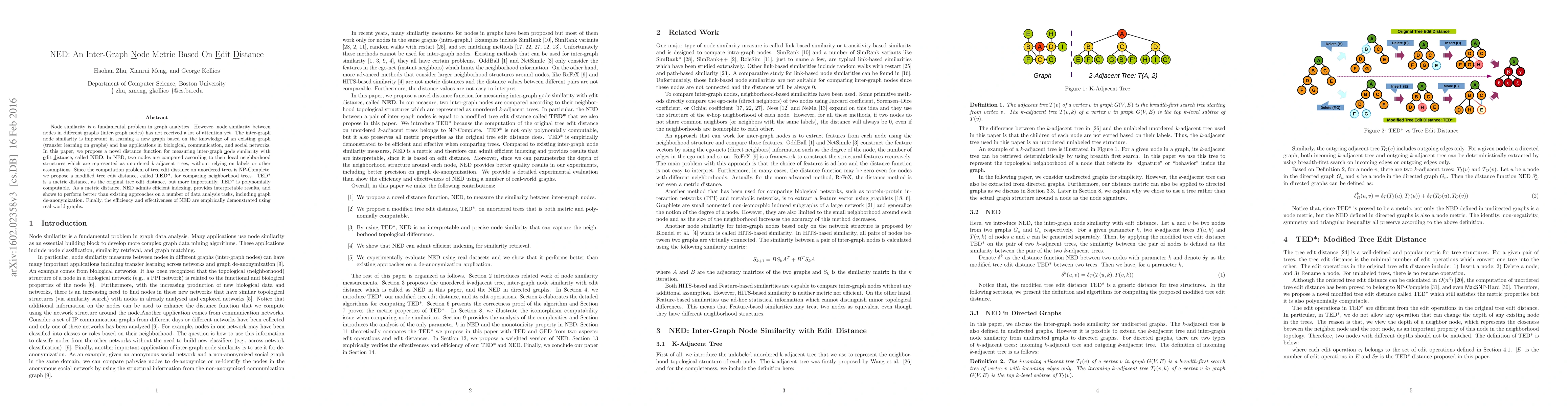 This paper introduces NED, a novel inter-graph node similarity metric based on edit distance, which measures similarity between nodes in different graphs by comparing their local neighborhood structures. The proposed TED* algorithm enables efficient computation of NED, demonstrating better performance than existing methods in various graph analysis tasks.