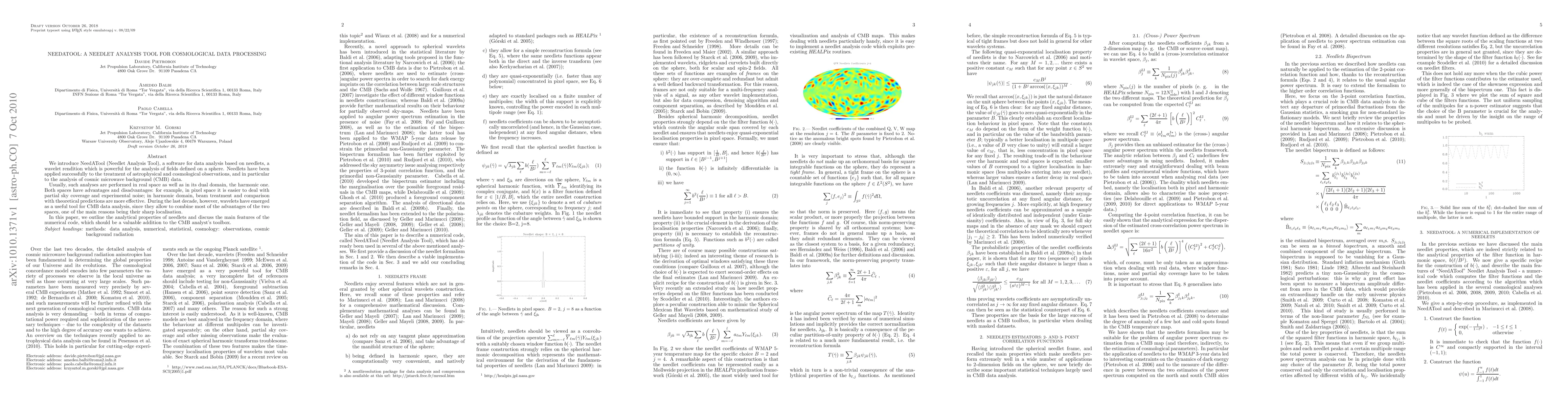NeedATool is a software for analyzing cosmological data using needlets, a wavelet rendition that combines advantages of real space and harmonic domain analysis, offering improved noise handling and localization.