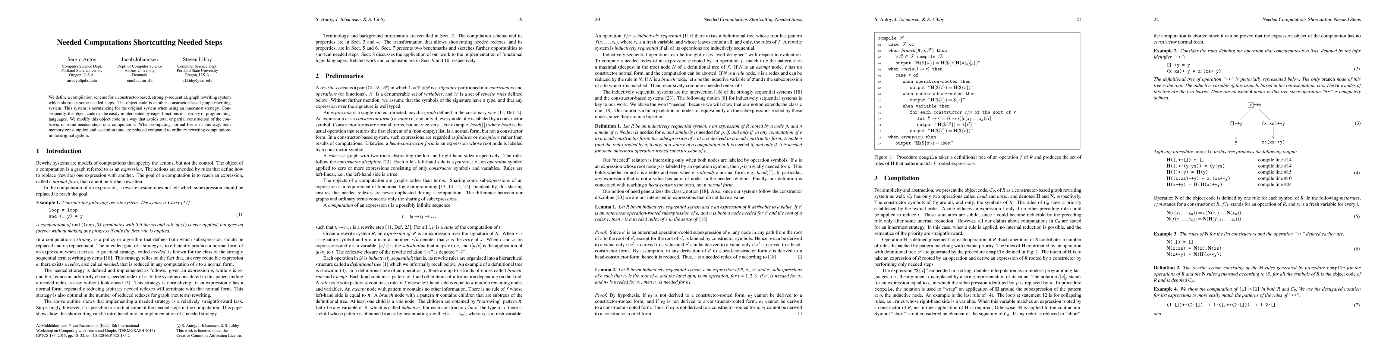 We define a compilation scheme for a constructor-based, strongly-sequential, graph rewriting system which shortcuts some needed steps. The object code is another constructor-based graph rewriting system. This system is normalizing for the original system when using an innermost strategy. Consequently, the object code can be easily implemented by eager functions in a variety of programming languages. We modify this object code in a way that avoids total or partial construction of the contracta of some needed steps of a computation. When computing normal forms in this way, both memory consumption and execution time are reduced compared to ordinary rewriting computations in the original system.