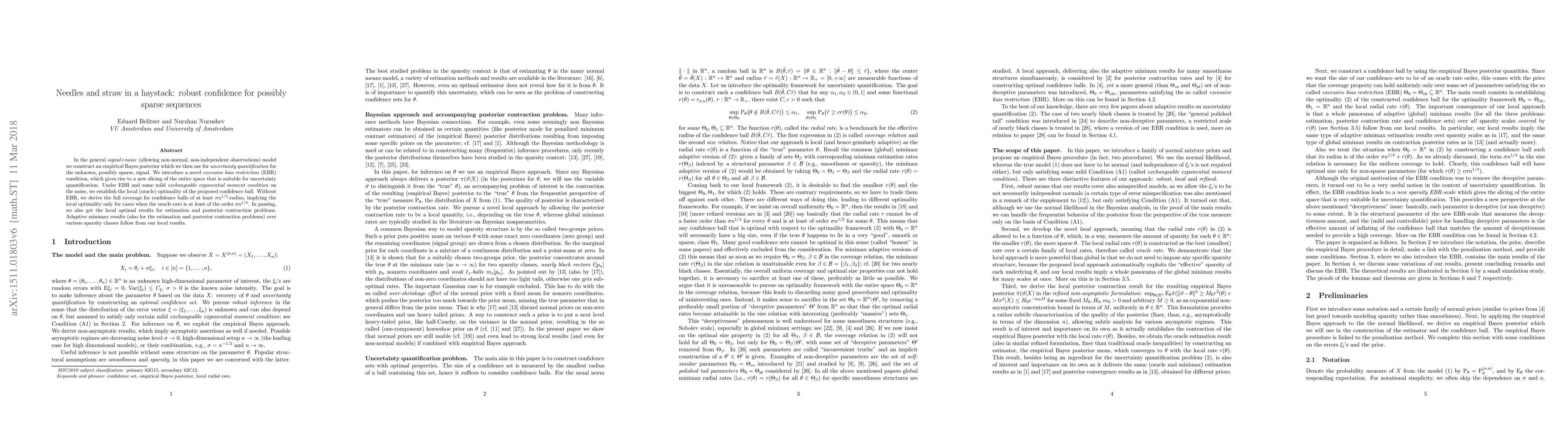 Researchers developed a method to provide robust confidence for possibly sparse sequences using an excessive bias restriction (EBR) condition. This approach enables uncertainty quantification and has been shown to achieve local optimality and adaptive minimax results for various problems related to signal estimation and posterior contraction.