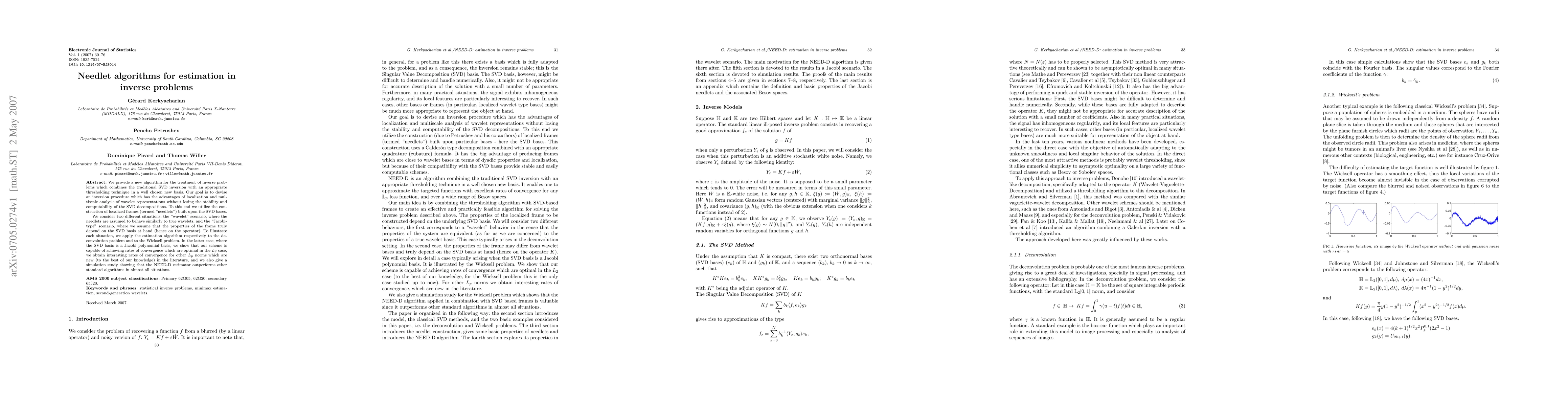 We provide a new algorithm for the treatment of inverse problems which combines the traditional SVD inversion with an appropriate thresholding technique in a well chosen new basis. Our goal is to devise an inversion procedure which has the advantages of localization and multiscale analysis of wavelet representations without losing the stability and computability of the SVD decompositions. To this end we utilize the construction of localized frames (termed "needlets") built upon the SVD bases. We consider two different situations: the "wavelet" scenario, where the needlets are assumed to behave similarly to true wavelets, and the "Jacobi-type" scenario, where we assume that the properties of the frame truly depend on the SVD basis at hand (hence on the operator). To illustrate each situation, we apply the estimation algorithm respectively to the deconvolution problem and to the Wicksell problem. In the latter case, where the SVD basis is a Jacobi polynomial basis, we show that our scheme is capable of achieving rates of convergence which are optimal in the $L_2$ case, we obtain interesting rates of convergence for other $L_p$ norms which are new (to the best of our knowledge) in the literature, and we also give a simulation study showing that the NEED-D estimator outperforms other standard algorithms in almost all situations.