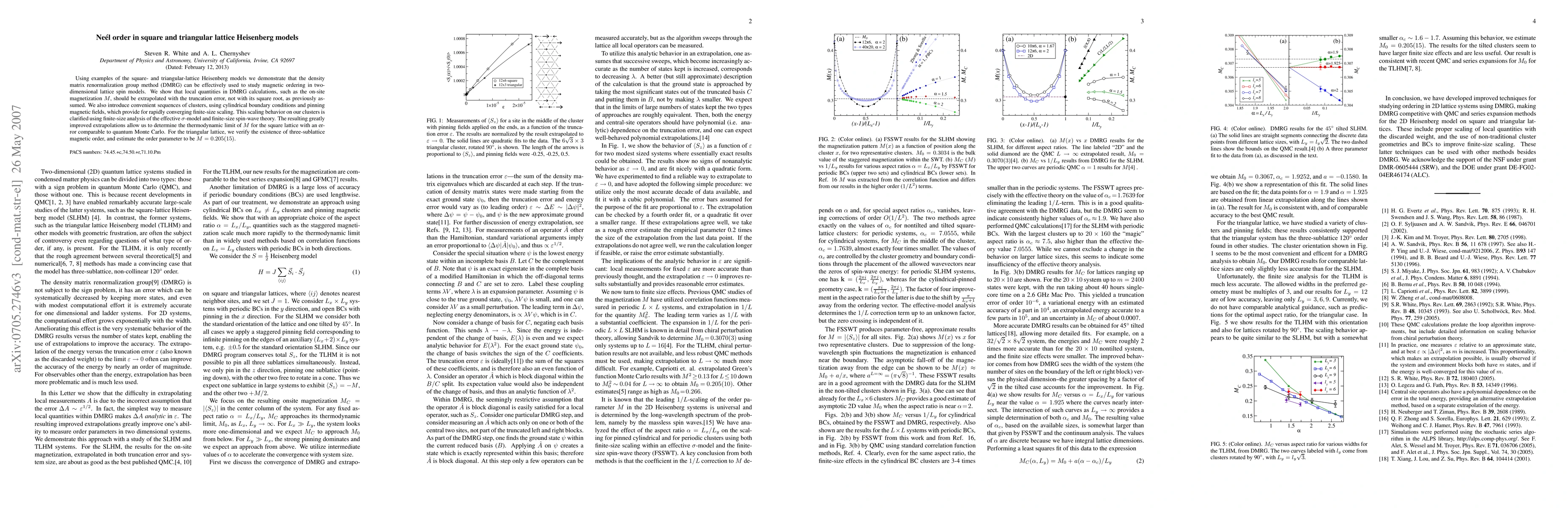 Researchers used DMRG to study magnetic ordering in 2D lattice spin models, improving extrapolation methods for the square and triangular lattices, and discovering three-sublattice order in the triangular lattice.