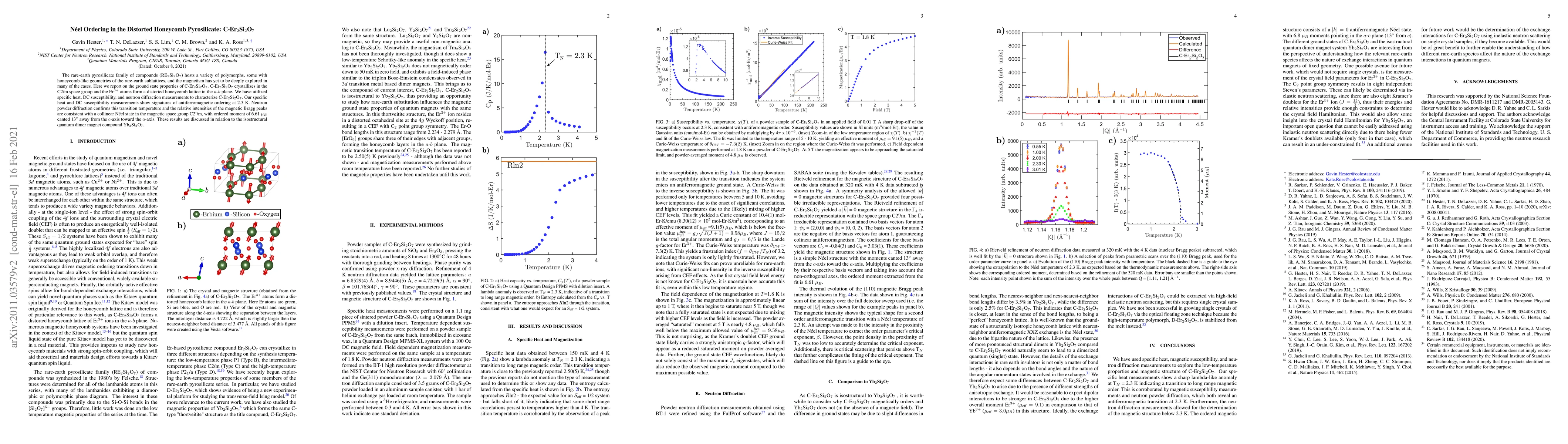 The rare-earth pyrosilicate family of compounds (RE$_{2}$Si$_{2}$O$_{7}$) hosts a variety of polymorphs, some with honeycomb-like geometries of the rare-earth sublattices, and the magnetism has yet to be deeply explored in many of the cases. Here we report on the ground state properties of C-Er$_{2}$Si$_{2}$O$_{7}$. C-Er$_{2}$Si$_{2}$O$_{7}$ crystallizes in the C2/m space group and the Er$^{3+}$ atoms form a distorted honeycomb lattice in the $a$-$b$ plane. We have utilized specific heat, DC susceptibility, and neutron diffraction measurements to characterize C-Er$_{2}$Si$_{2}$O$_{7}$. Our specific heat and DC susceptibility measurements show signatures of antiferromagnetic ordering at 2.3 K. Neutron powder diffraction confirms this transition temperature and the relative intensities of the magnetic Bragg peaks are consistent with a collinear N\'eel state in the magnetic space group C2'/m, with ordered moment of 6.61 $\mu_{B}$ canted 13$^{\circ}$ away from the $c$-axis toward the $a$-axis. These results are discussed in relation to the isostructural quantum dimer magnet compound Yb$_{2}$Si$_{2}$O$_{7}$.