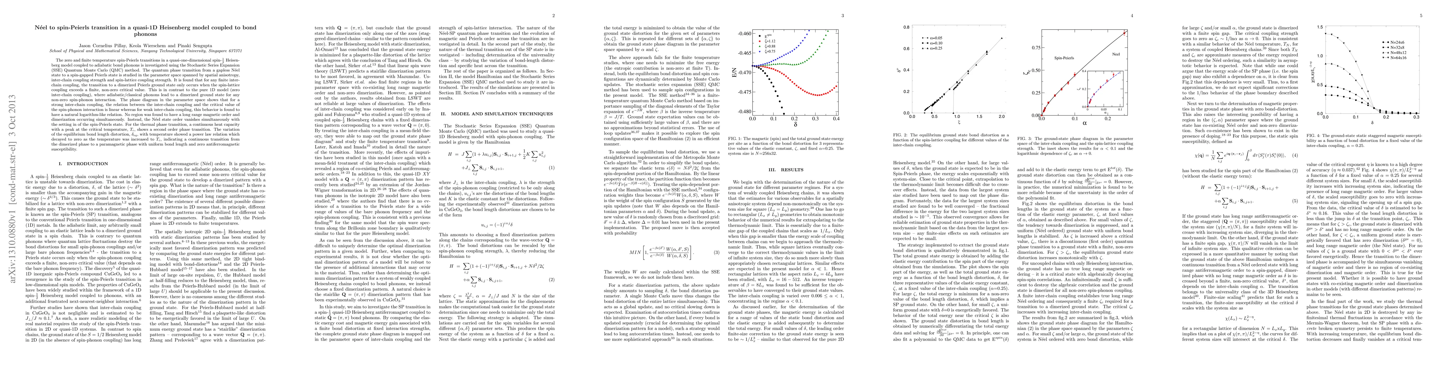 This study investigates the spin-Peierls transition in a quasi-1D Heisenberg model with bond phonons, finding that the transition to a Peierls state requires a finite critical spin-lattice coupling. Unlike the pure 1D case, inter-chain coupling alters the critical spin-phonon interaction, with distinct linear and logarithmic relations for strong and weak coupling, respectively. The Neel state vanishes as the spin-Peierls state emerges, and a continuous second-order thermal phase transition is observed.
