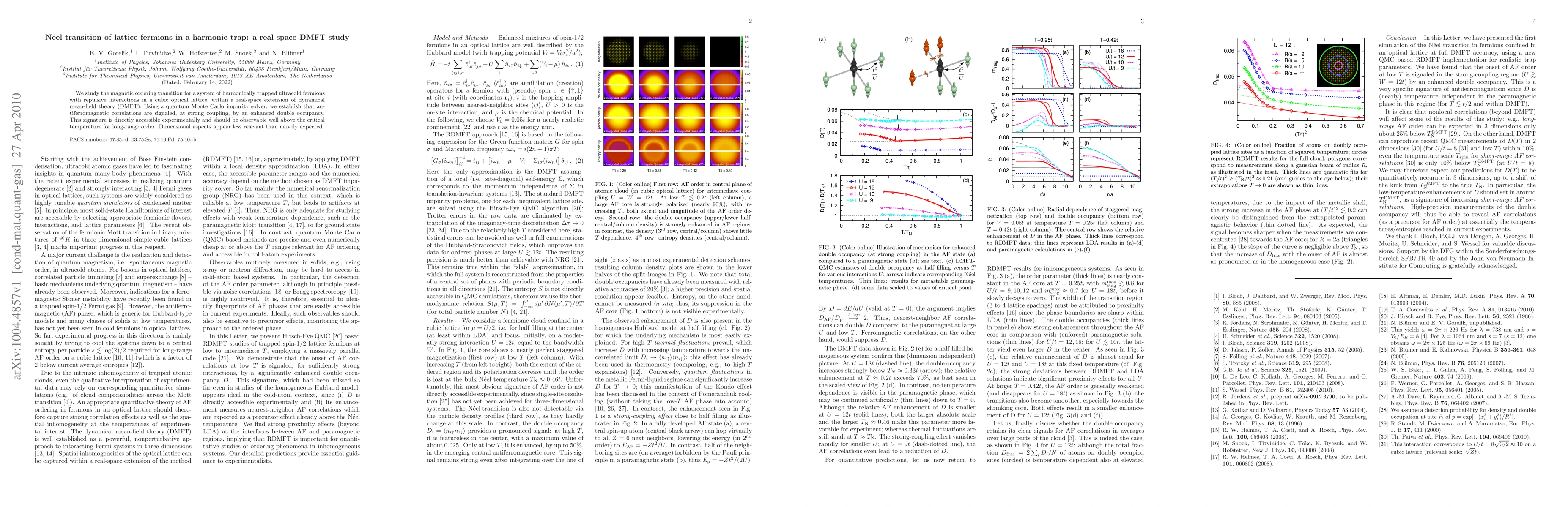 We study the magnetic ordering transition for a system of harmonically trapped ultracold fermions with repulsive interactions in a cubic optical lattice, within a real-space extension of dynamical mean-field theory (DMFT). Using a quantum Monte Carlo impurity solver, we establish that antiferromagnetic correlations are signaled, at strong coupling, by an enhanced double occupancy. This signature is directly accessible experimentally and should be observable well above the critical temperature for long-range order. Dimensional aspects appear less relevant than naively expected.