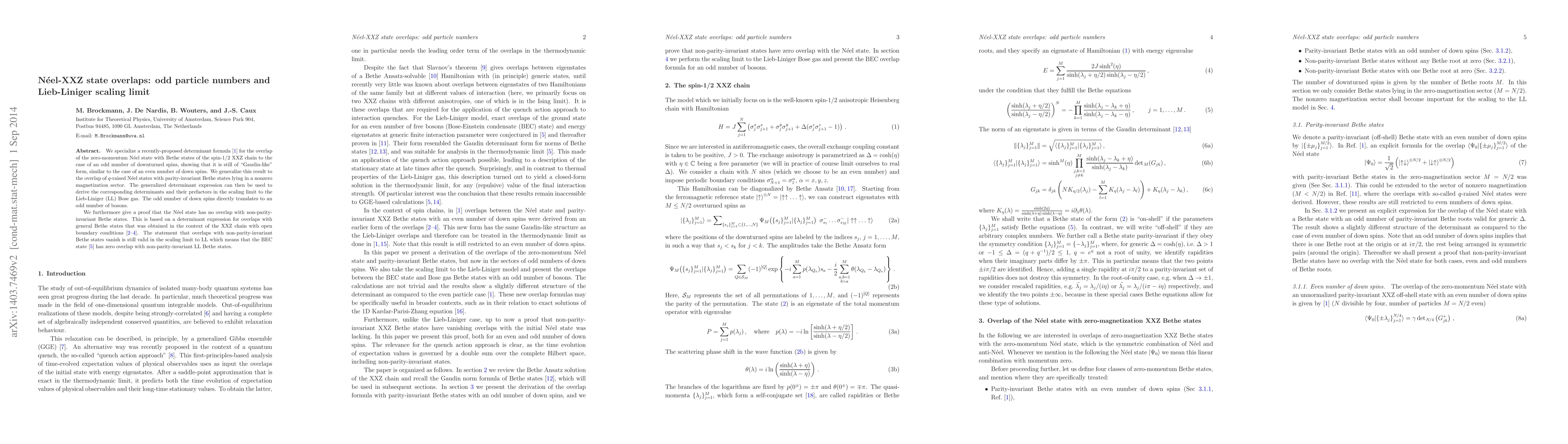 This paper explores the overlap of N\'eel states with Bethe states of the spin-1/2 XXZ chain, showing that the overlap formula remains "Gaudin-like" for odd numbers of down spins. It extends the analysis to the Lieb-Liniger scaling limit, revealing that the overlap with non-parity-invariant Bethe states vanishes.