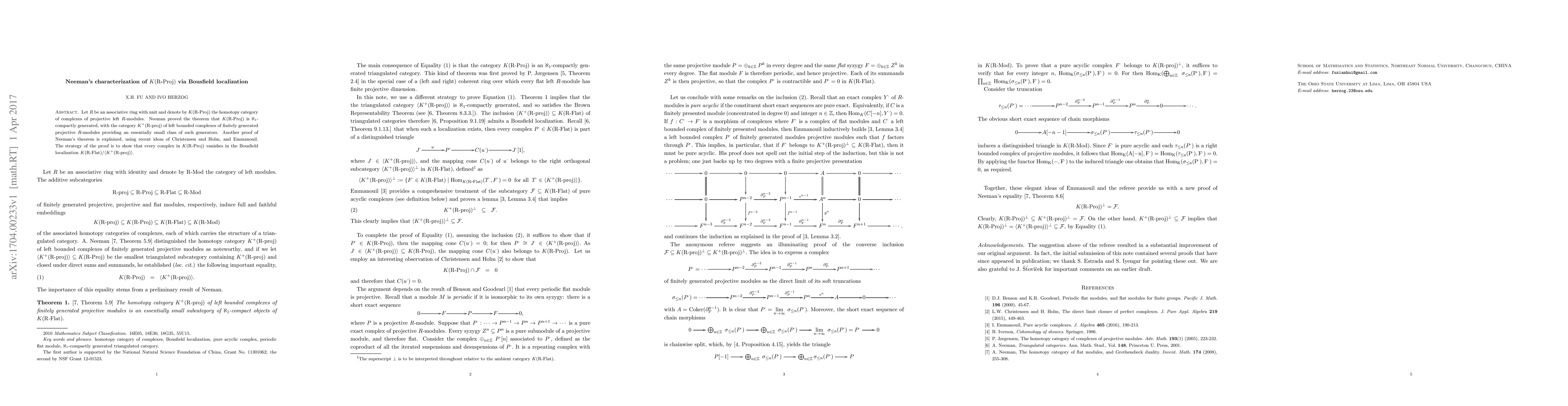 Researchers prove that the homotopy category of projective left R-modules is α_1-compactly generated, using Bousfield localization to show that every complex in this category vanishes in a certain quotient category.