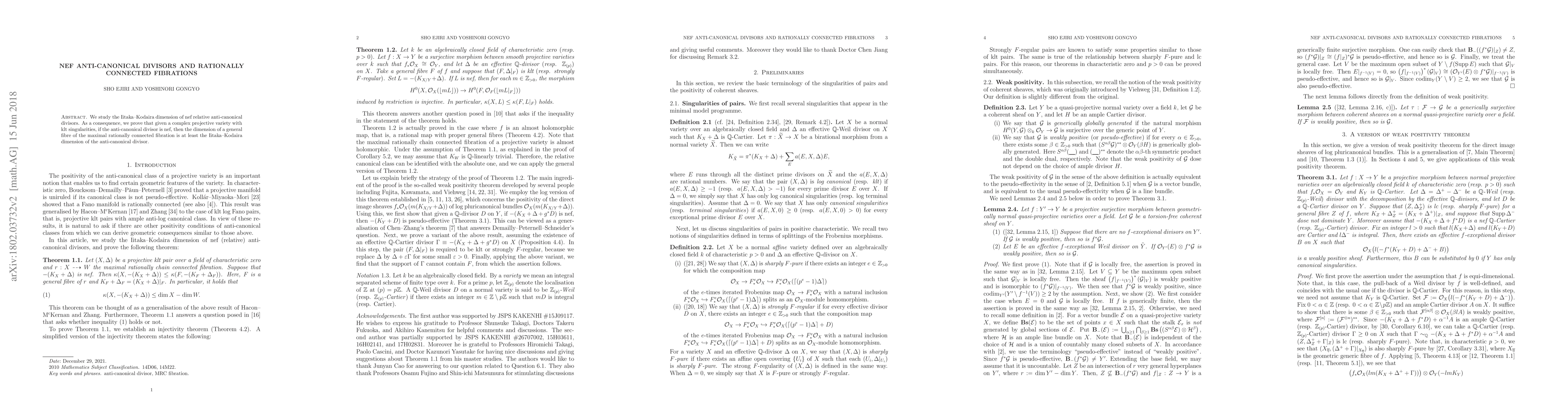 This paper investigates the Iitaka-Kodaira dimension of nef relative anti-canonical divisors on complex projective varieties with klt singularities. It concludes that if the anti-canonical divisor is nef, the dimension of the general fiber in the maximal rationally connected fibration is at least this dimension.