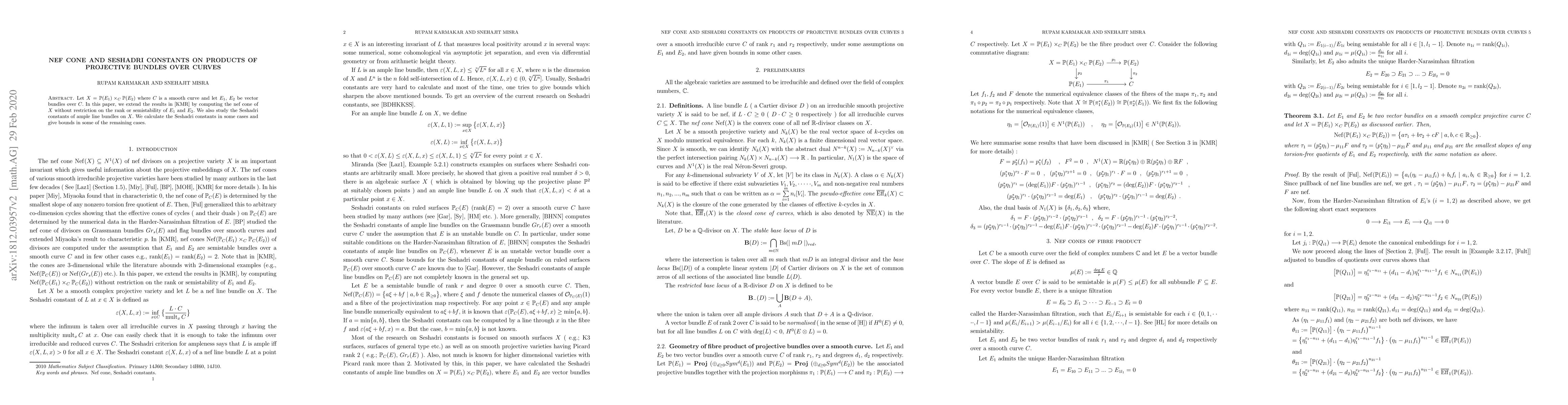 Let $X = \mathbb{P}(E_1) \times_C \mathbb{P}(E_2)$ where $C$ is a smooth curve and let $E_1$, $E_2$ be vector bundles over $C$. In this paper, we extend the results in \cite{K-M-R} by computing the nef cone of $X$ without restriction on the rank or semistability of $E_1$ and $E_2$. We also study the Seshadri constants of ample line bundles on $X$. We calculate the Seshadri constants in some cases and give bounds in some of the remaining cases.