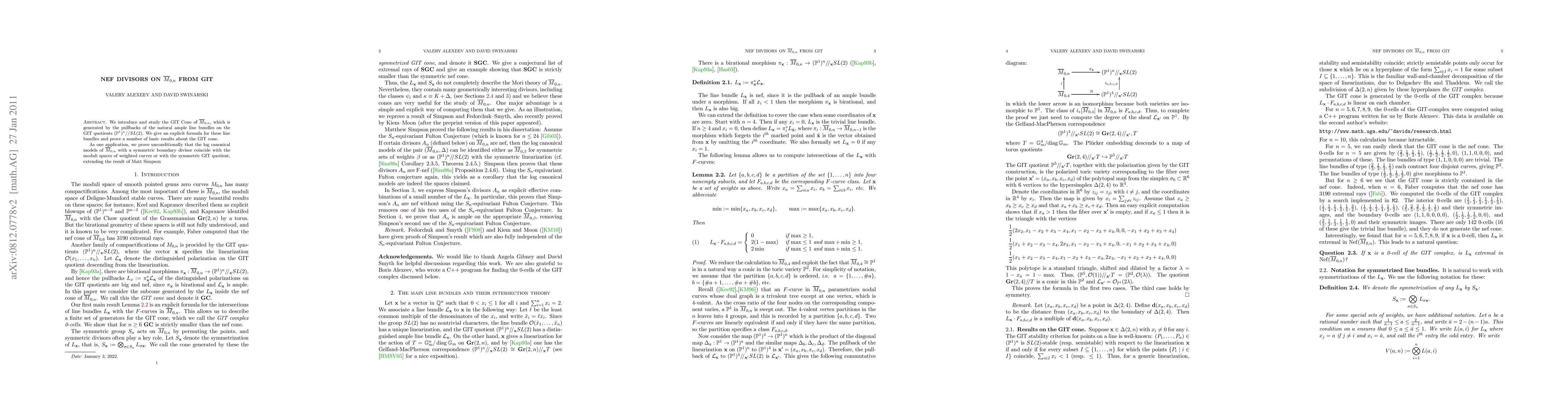 We introduce and study the GIT CONE of $\bar{M}_{0,n}$, which is generated by the pullbacks of the natural ample line bundles on the GIT quotients $(\mathbb P^1)^n//SL(2)$. We give an explicit formula for these line bundles and prove a number of basic results about the GIT cone. As one application, we prove unconditionally that the log canonical models of $\bar{M}_{0,n}$ with a symmetric boundary divisor coincide with the moduli spaces of weighted curves or with the symmetric GIT quotient, extending the result of Matt Simpson arXiv:0709.4037. (Cf. also a different proof by Fedorchuk and Smyth arXiv:0810.1677)