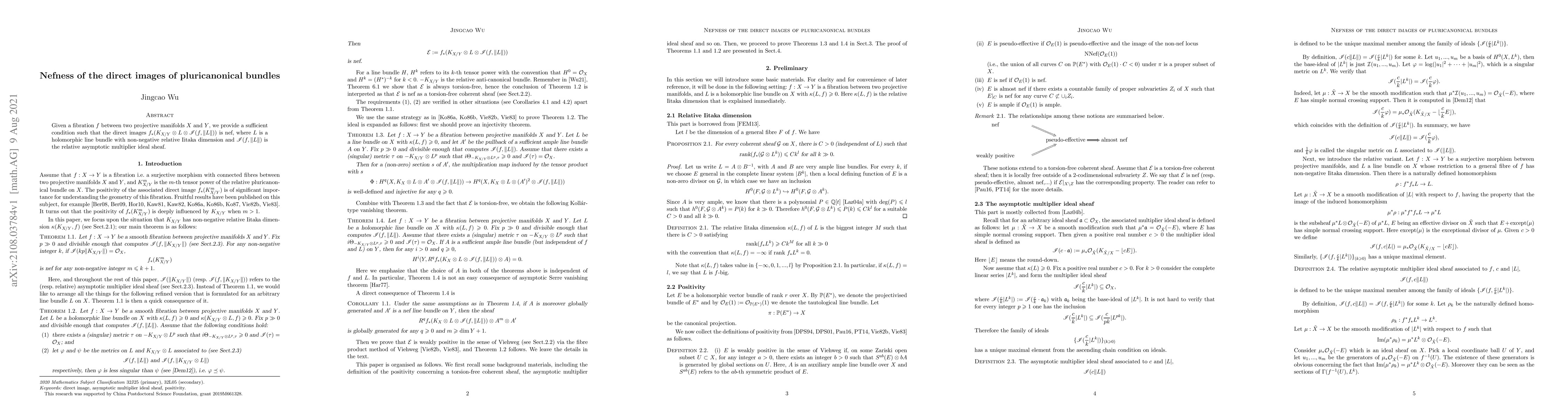 Given a fibration $f$ between two projective manifolds $X$ and $Y$, we provide a sufficient condition such that the direct images $f_{\ast}(K_{X/Y}\otimes L\otimes\mathscr{I}(f,\|L\|))$ is nef, where $L$ is a holomorphic line bundle with non-negative relative Iitaka dimension and $\mathscr{I}(f,\|L\|)$ is the relative asymptotic multiplier ideal sheaf.