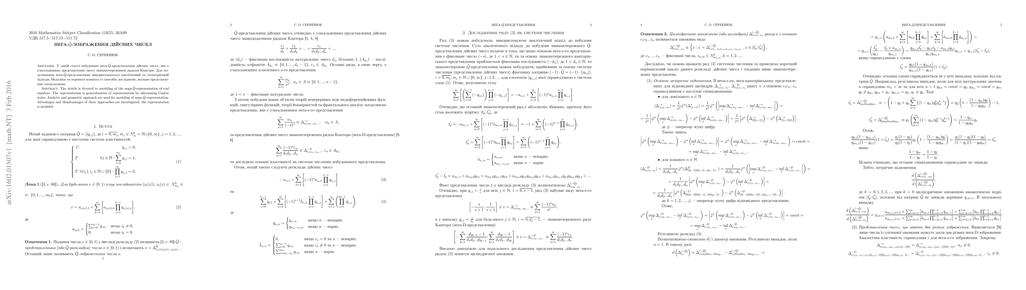 The paper presents a novel generalization of Cantor series representations, introducing the concept of nega-$ ilde Q$-representation and modeling it through both analytic and geometric approaches.