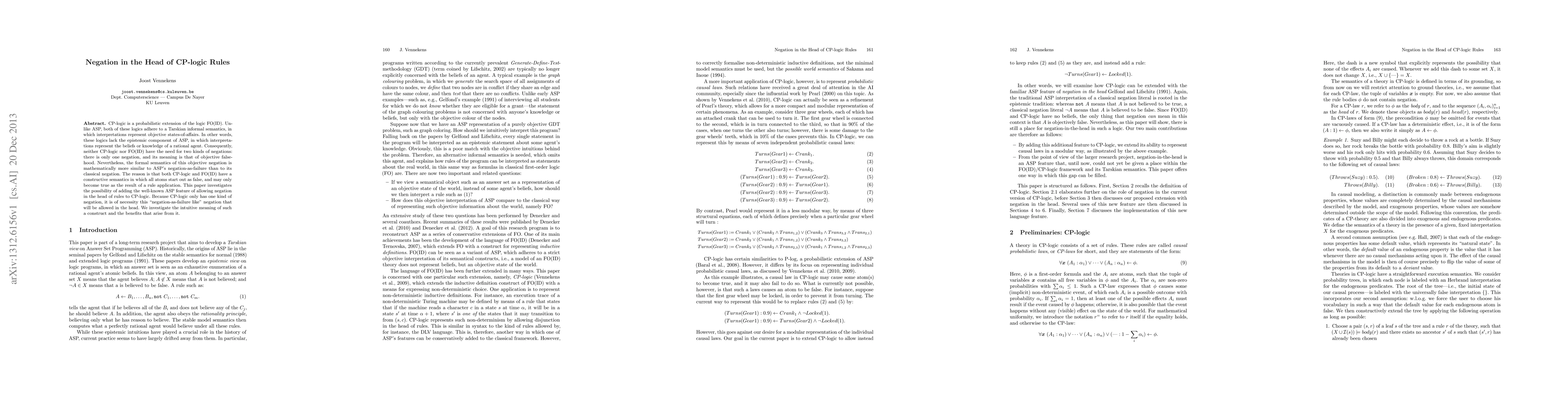 This paper explores the integration of ASP's negation-as-failure into CP-logic rules, focusing on the implications of allowing negation in the head of rules within a probabilistic logic framework. It examines the intuitive meaning and benefits of this construct, given CP-logic's unique semantics.