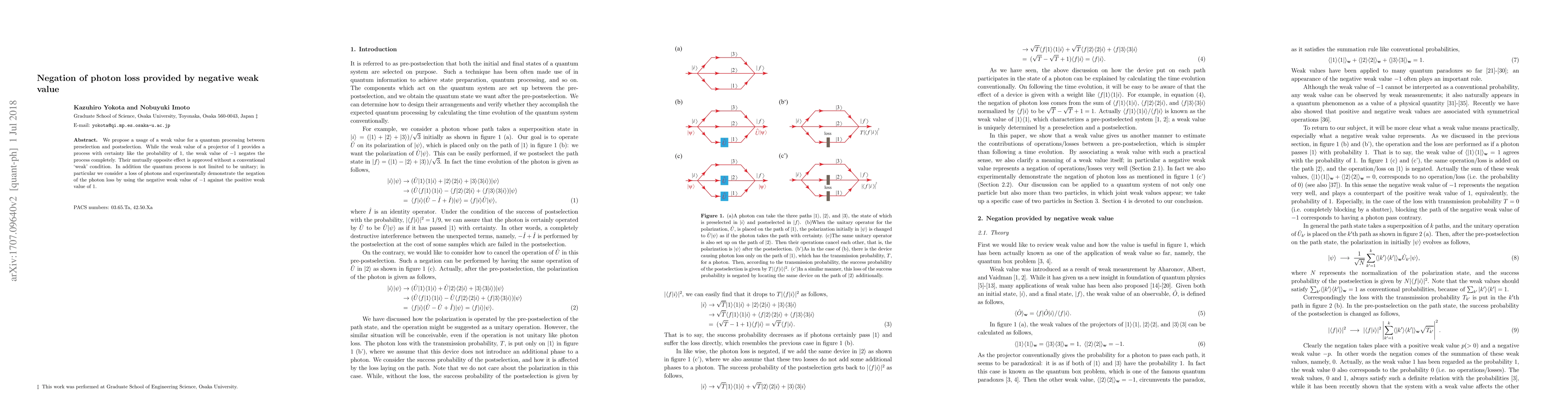 We propose a usage of a weak value for a quantum processing between preselection and postselection. While the weak value of a projector of 1 provides a process with certainty like the probability of 1, the weak value of -1 negates the process completely. Their mutually opposite effect is approved without a conventional `weak' condition. In addition the quantum process is not limited to be unitary; in particular we consider a loss of photons and experimentally demonstrate the negation of the photon loss by using the negative weak value of -1 against the positive weak value of 1.