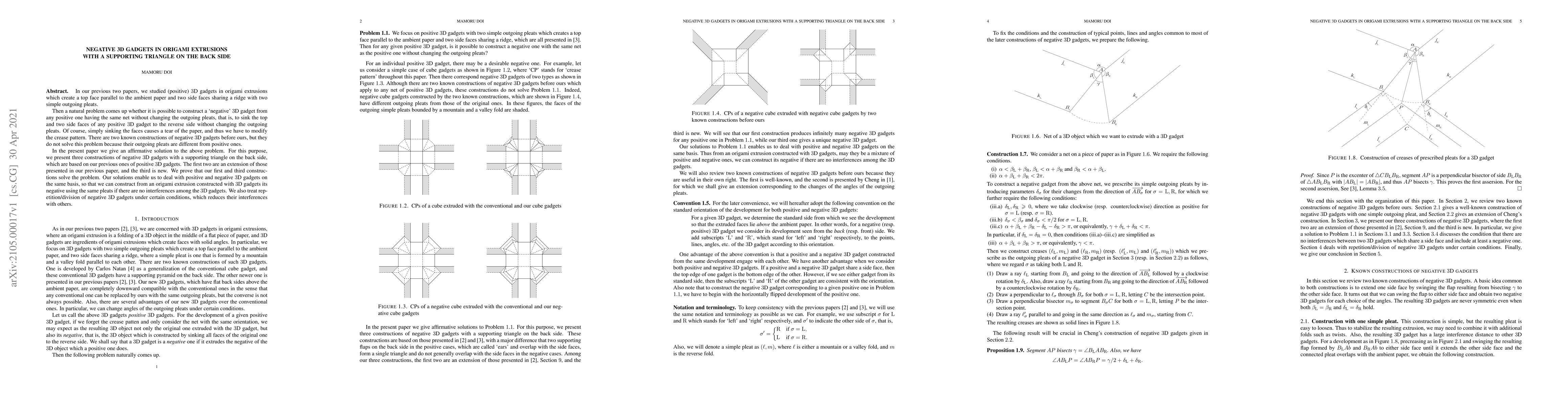 This paper presents three constructions for negative 3D gadgets in origami extrusions, extending previous methods for positive 3D gadgets. The authors successfully modify the crease pattern to avoid tearing the paper while maintaining the same outgoing pleats, enabling the creation of negative 3D gadgets from their positive counterparts.